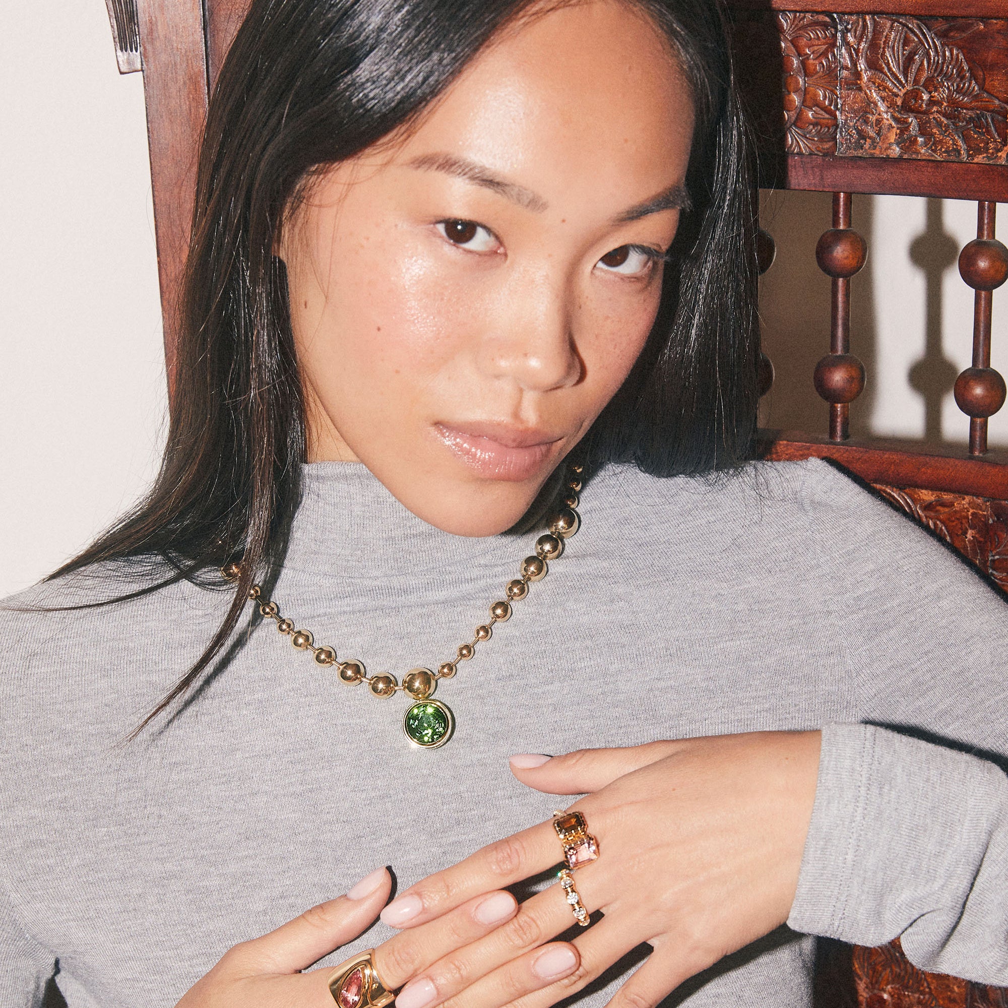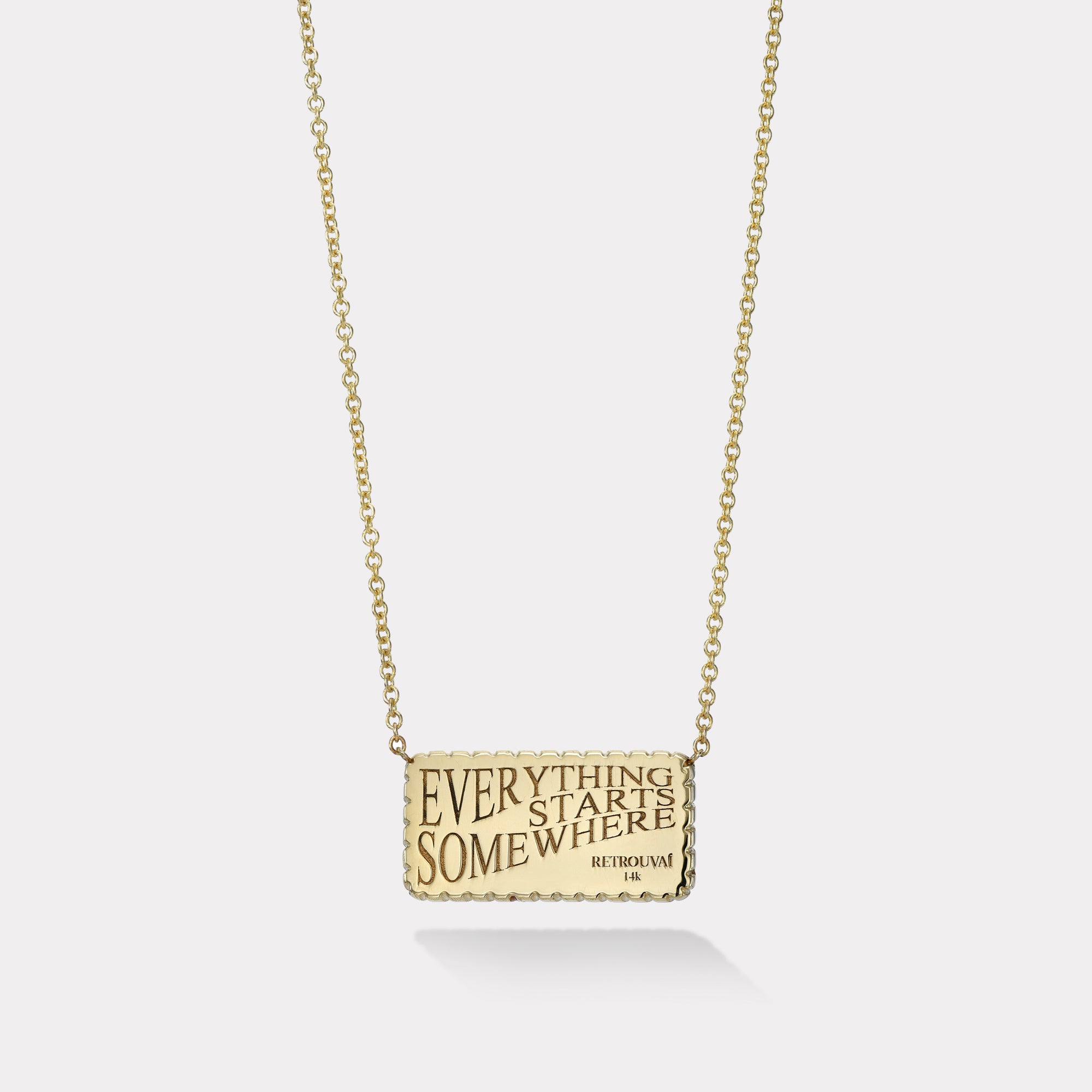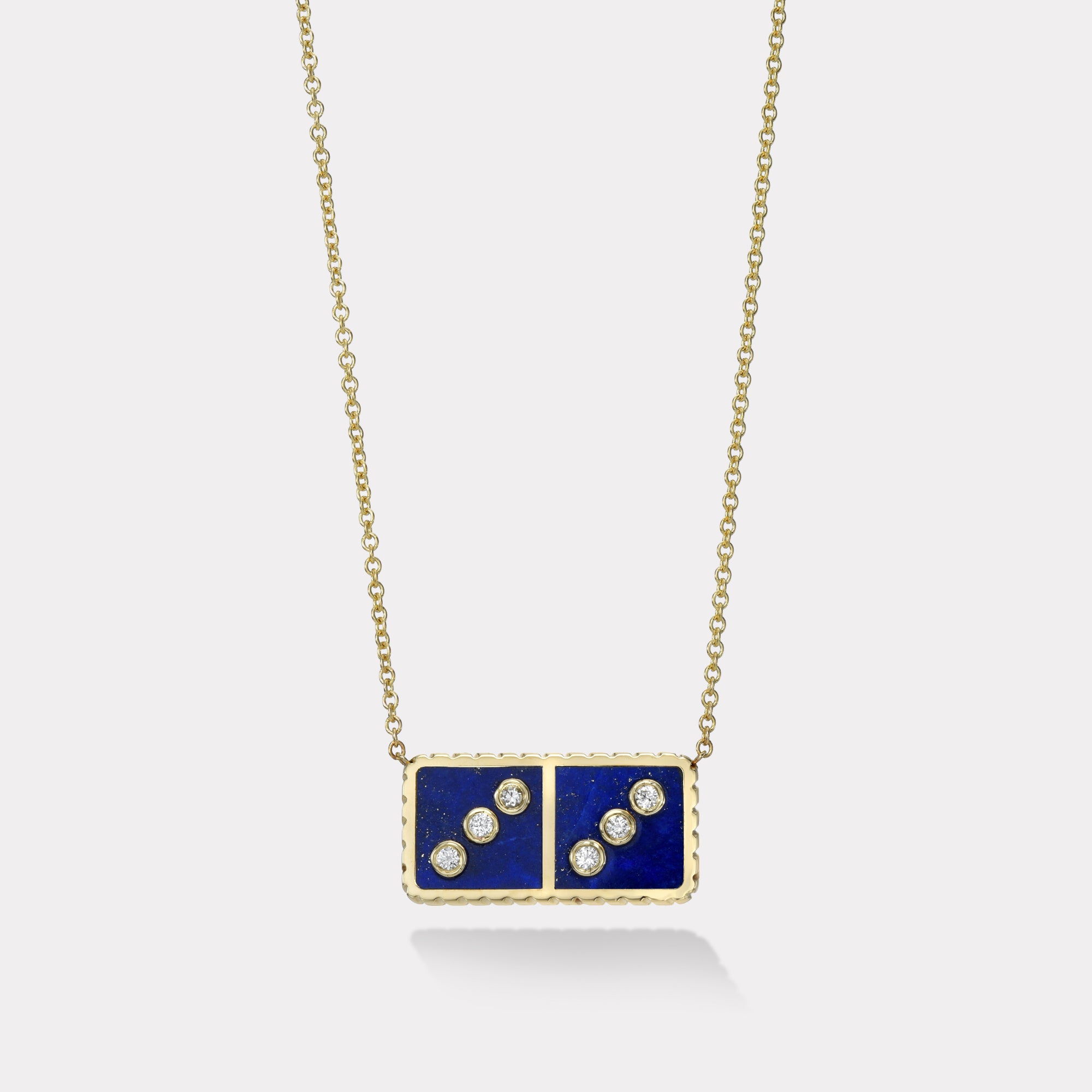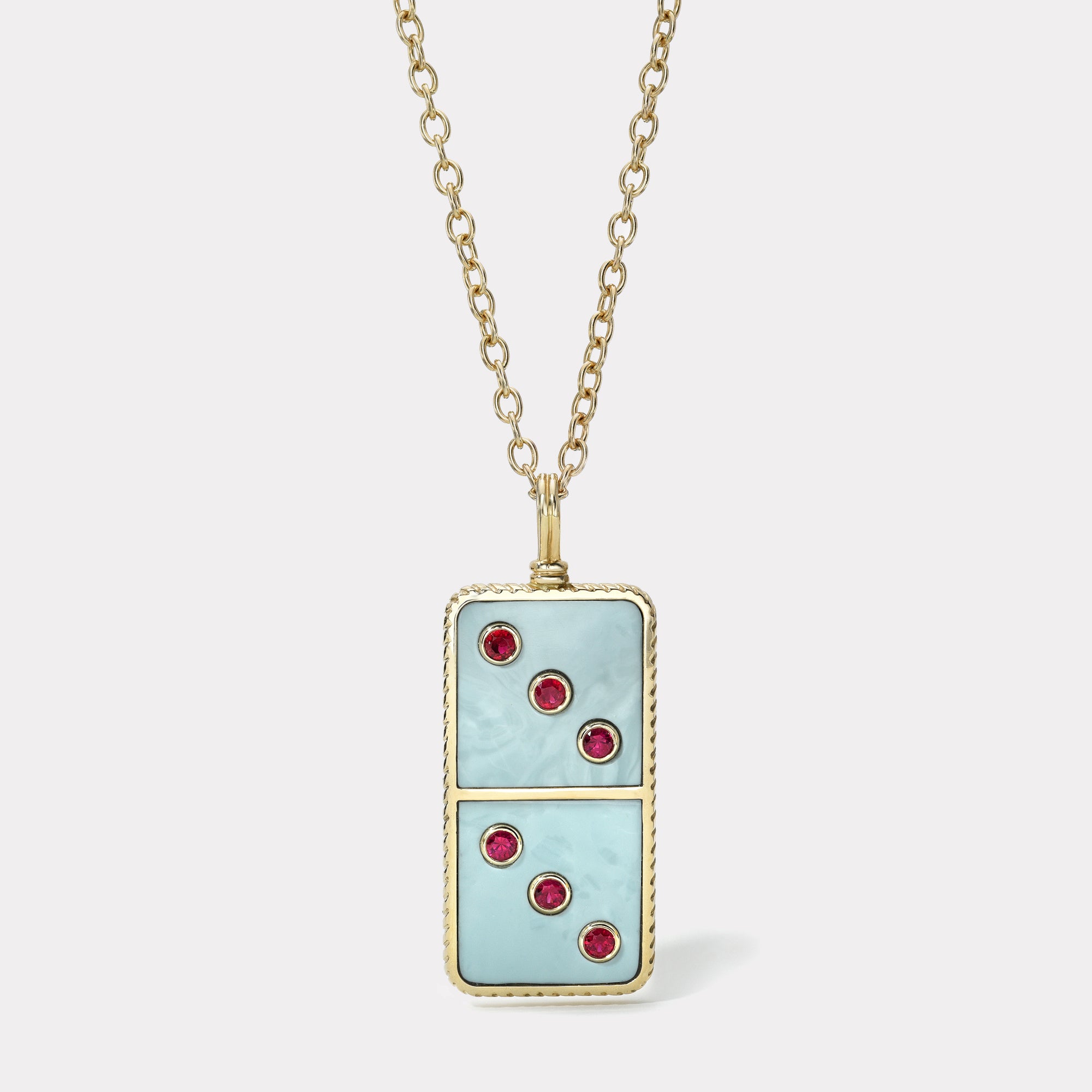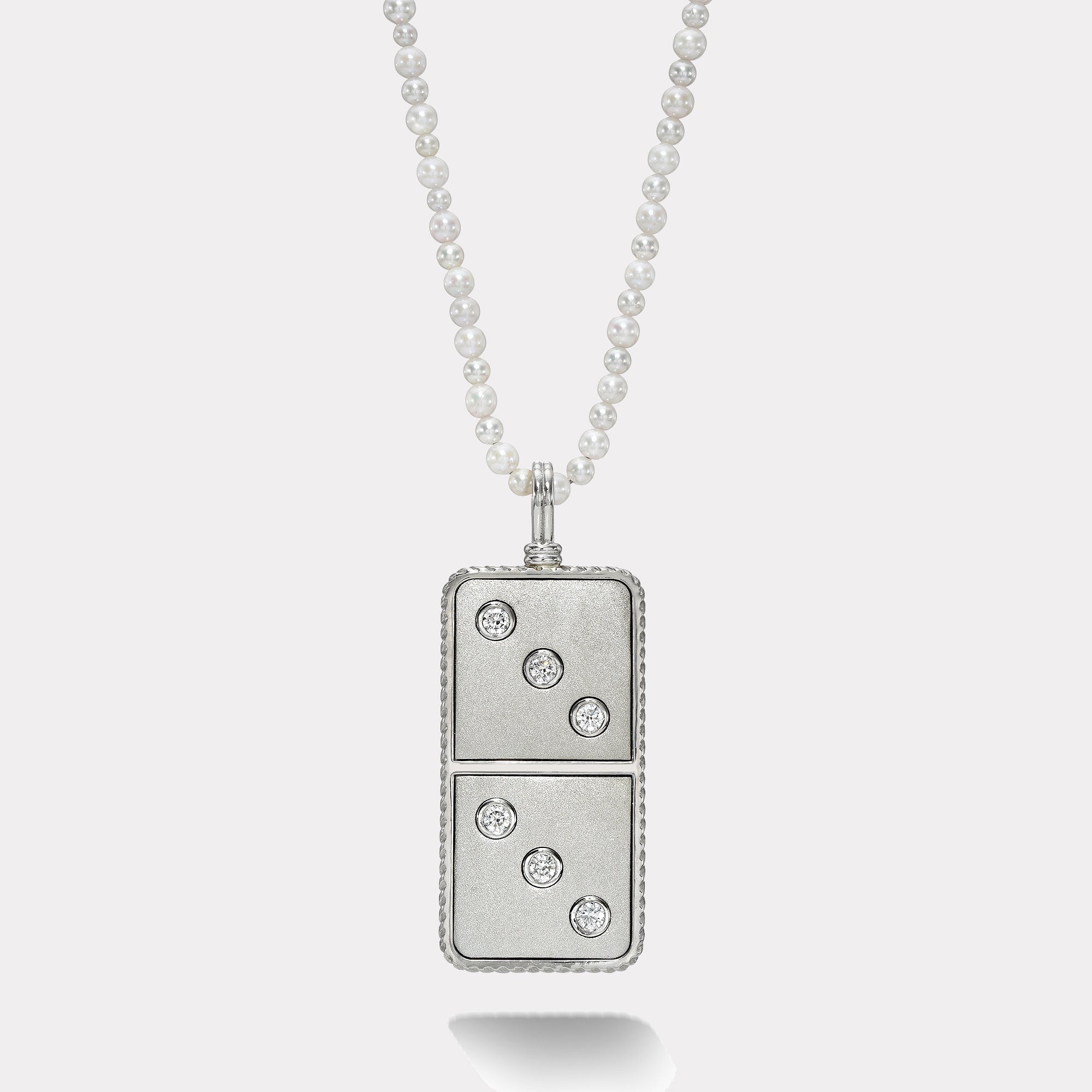 Our Domino collection represents the idea that even small actions can create a large impact. Every action we take has a ripple effect on the world around us. One small act of kindness or cruelty can set off a chain reaction. The back of the domino pendant is engraved with "Everything starts somewhere."