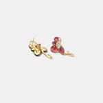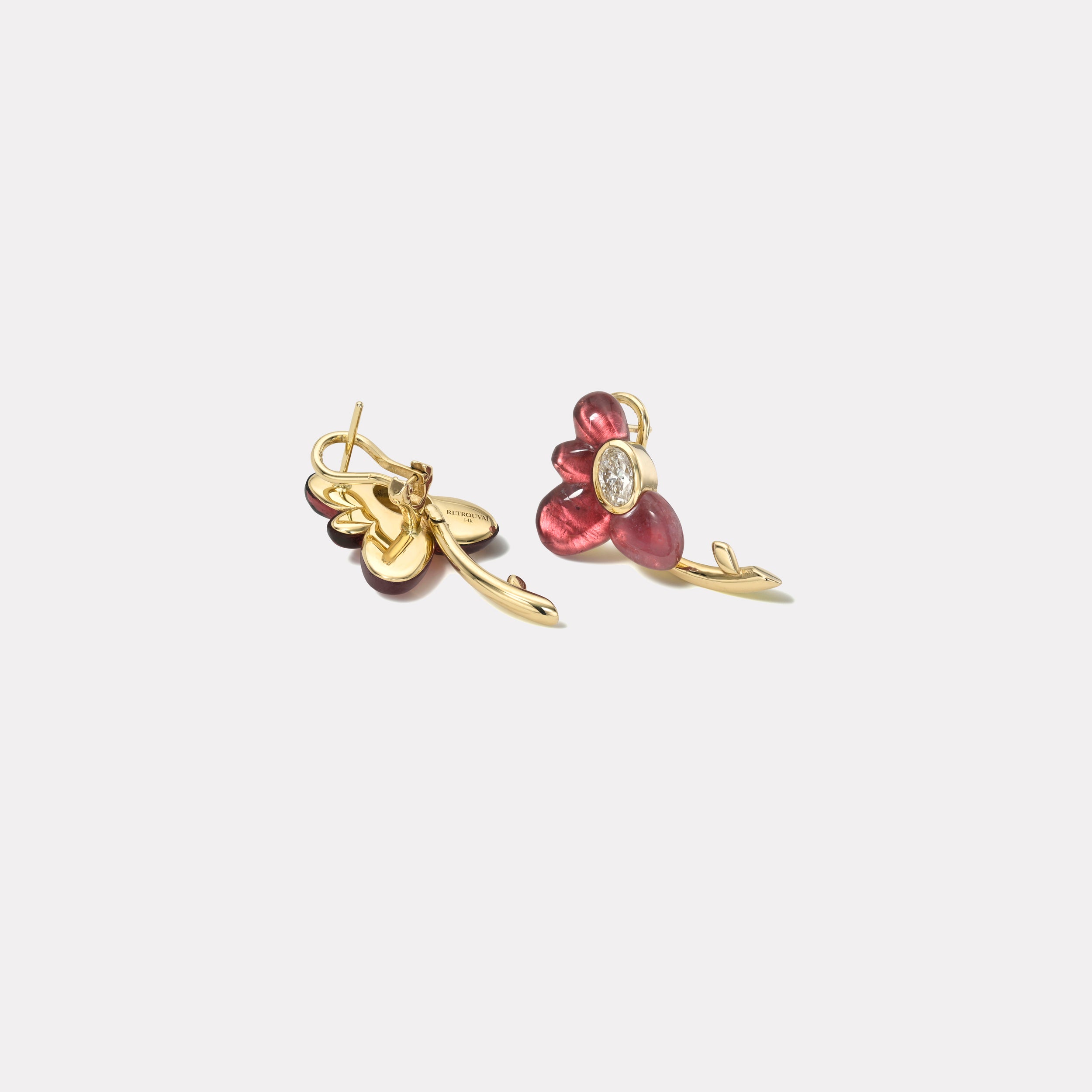 1.05ct Oval Brilliant Diamonds in Hand Carved Rubellite Flower Earrings
