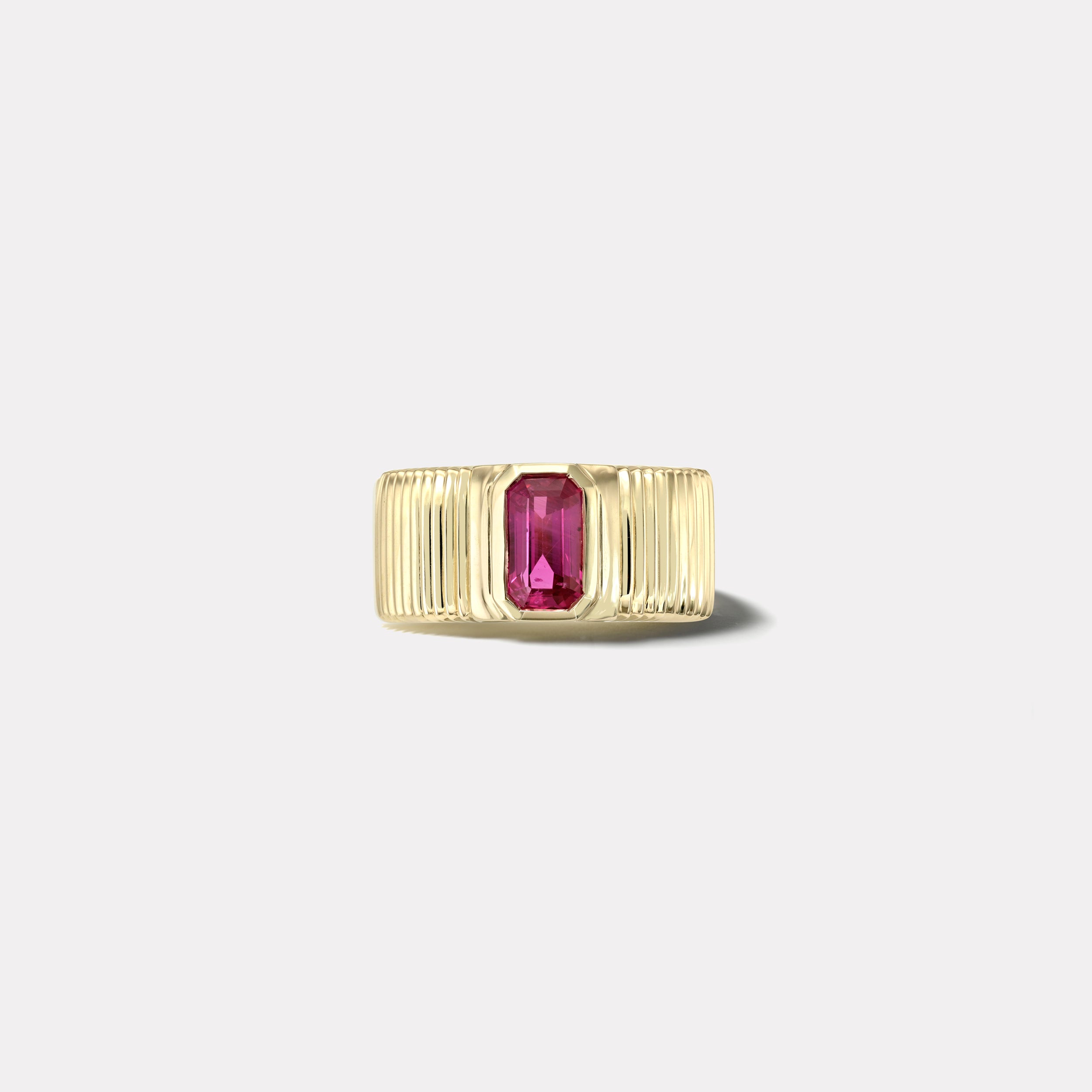 1.15ct Emerald Cut Pink Sapphire Pleated Solitaire Band