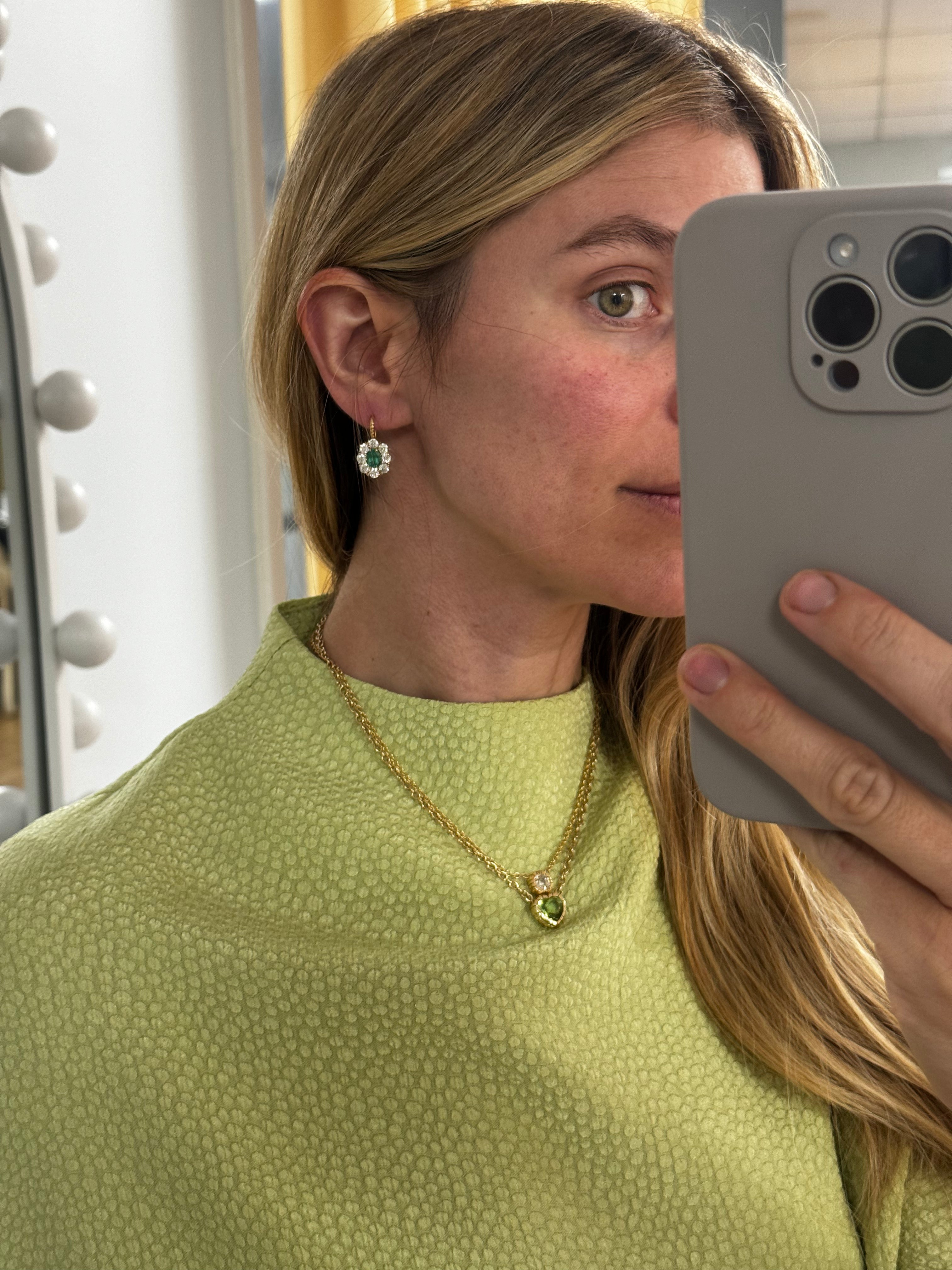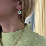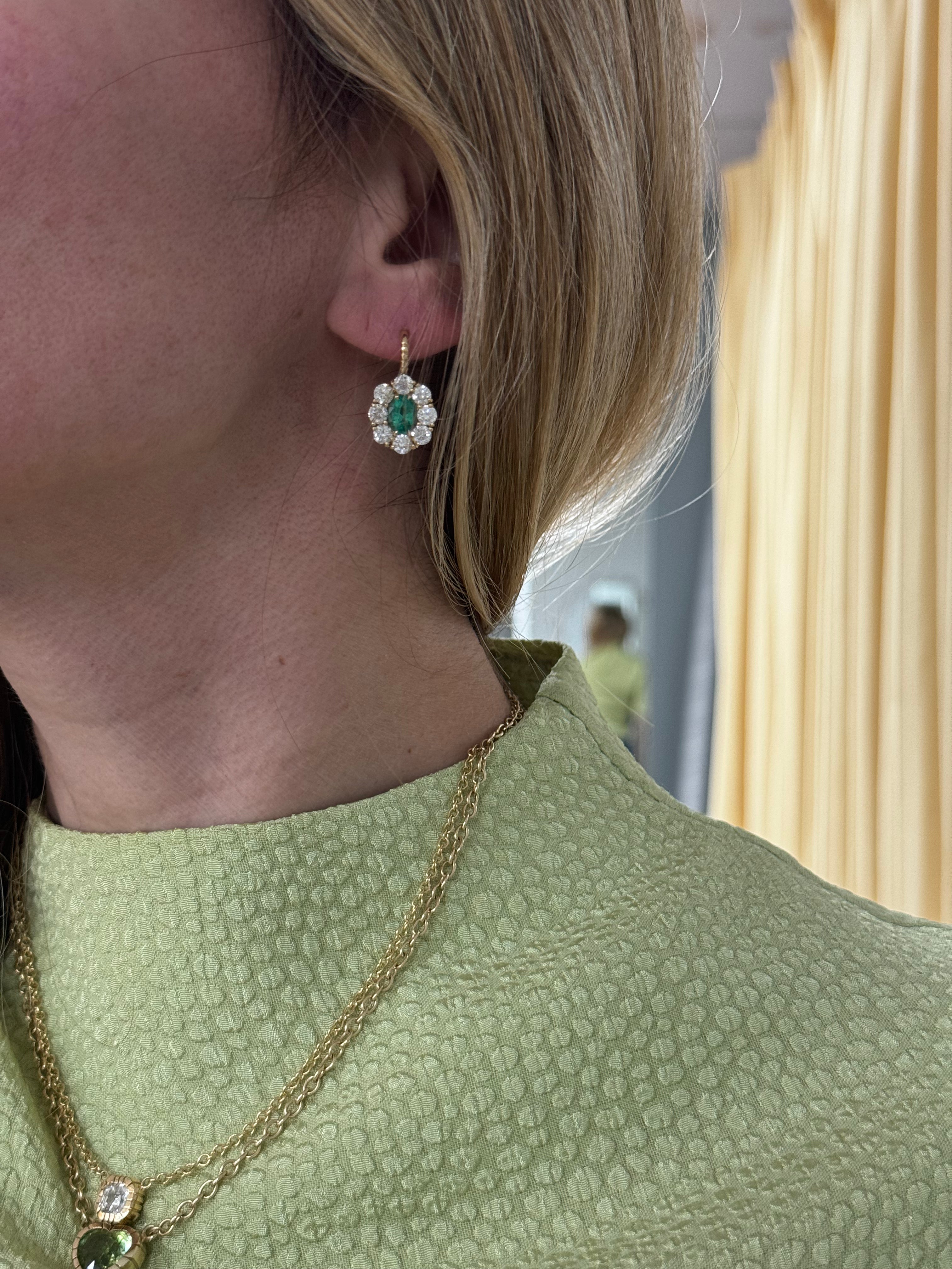 1.52ct Oval Emerald Diamond Halo Heirloom Bezel Earrings