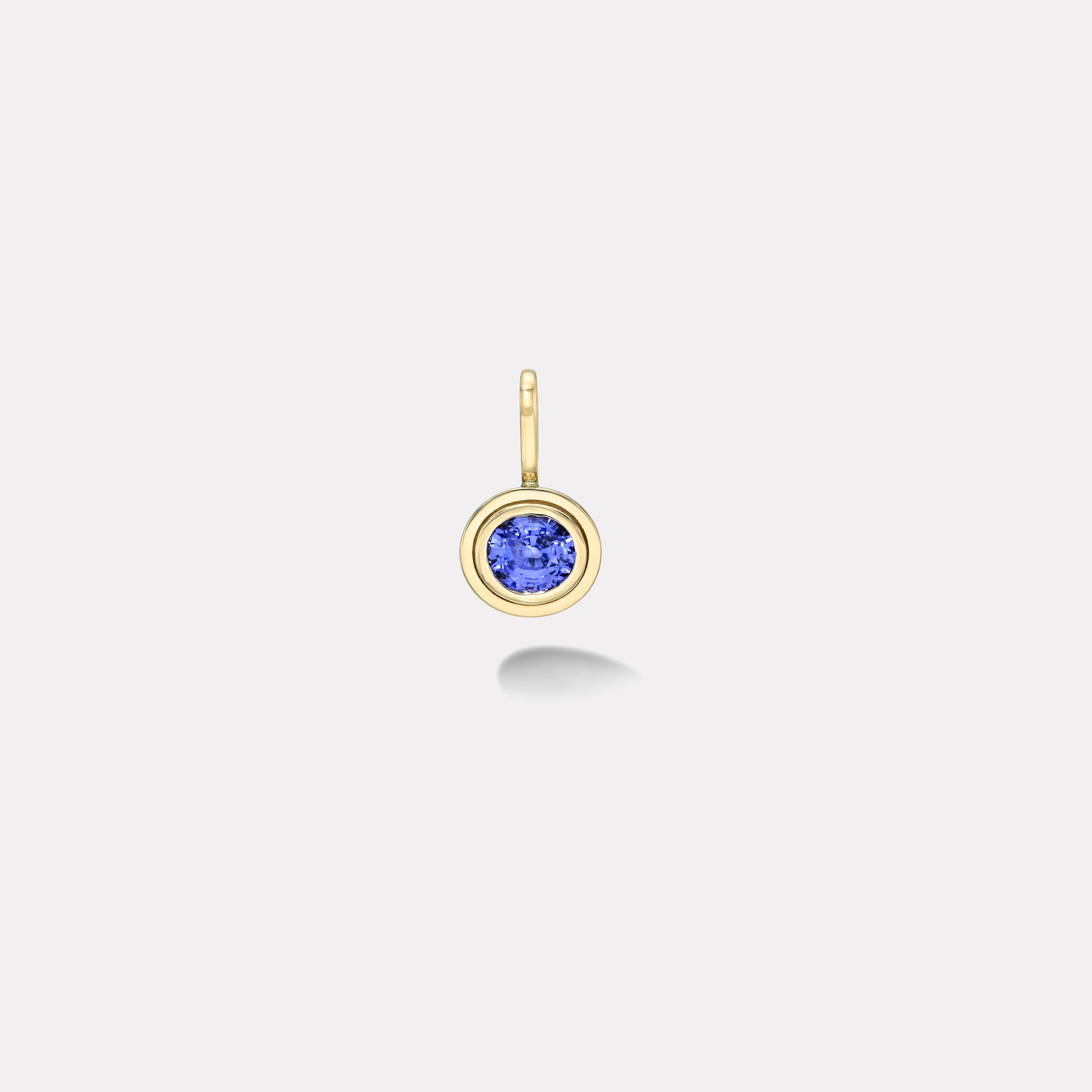 This charm comes standard in 14k yellow and features a 2ct Cushion Blue Sapphire with a fixed bale.
