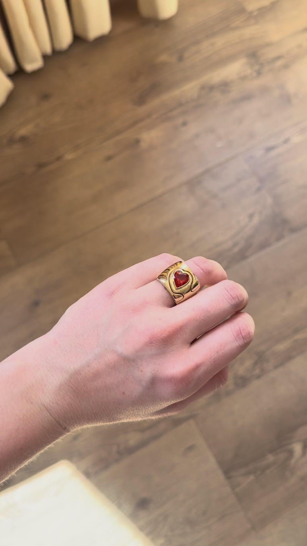 Heavy polished 14k yellow gold with a 1.74ct Heart Fire Opal. This ring is a size 6.5.