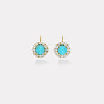 10.6 Round Turquoise Cabochons with Diamonds Heirloom Bezel Earrings
