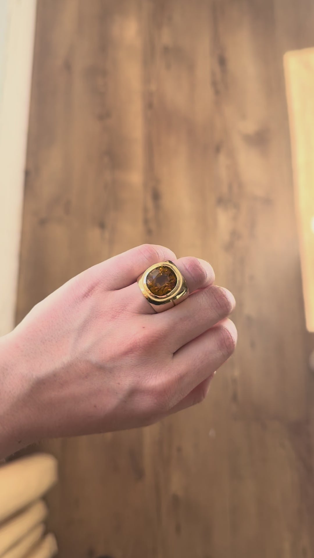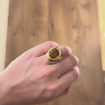 Polished 14k yellow gold with a 11.49ct Cushion Golden Yellow Tourmaline. Ring is a size 7.5. It is one of a kind and ready for immediate shipping.