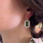 Mismatched 17.57ct Cushion Cabochon Green Tourmalines Diamond Heirloom Bezel Earrings