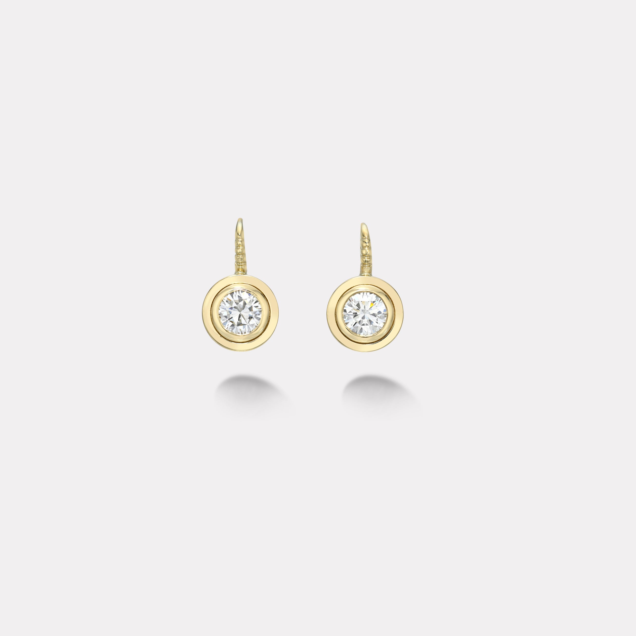 14k gold earrings in our signature Bounce setting featuring two round Diamonds totaling 1ct. These hook earrings sit close to the ear.