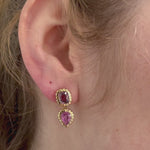 These double stone statement drop earrings feature 2.17cts of Pink Spinel and 1.63cts of Pink Sapphire set in our signature Heirloom Bezels. These earrings are 14k yellow gold and feature a snug butterfly back.