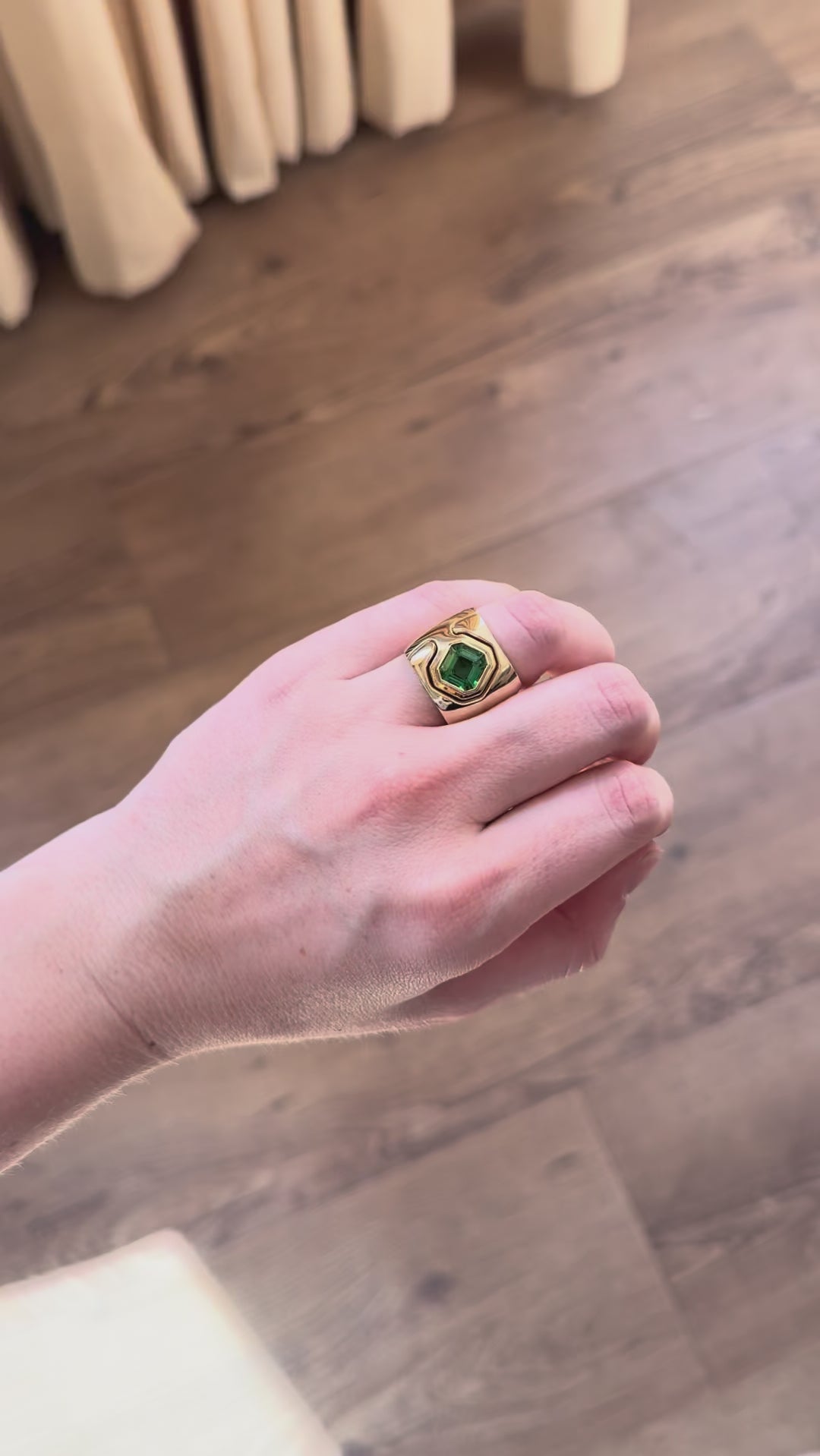 Heavy polished 14k yellow gold with a 2.68ct Emerald Cut Tsavorite. This ring is a size 7.
