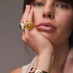 We make jewelry with integrity. The collection is crafted by a small team of skilled artisans who take pride in their work. In the studio, we recycle as much gold as possible. For non-recycled metal, our caster works exclusively with fair trade, fair mined gold. We work with extremely reputable diamond and gemstone dealers both locally and abroad. Our melee (accent diamonds) are conflict-free and consistently sourced from a single supplier. Diamonds with a GIA report are available over 0.25ct upon request. Please inquire for associated costs. Colored stones and the rough stone for our inlay are hand selected. All of our inlay is hand cut in Los Angeles.