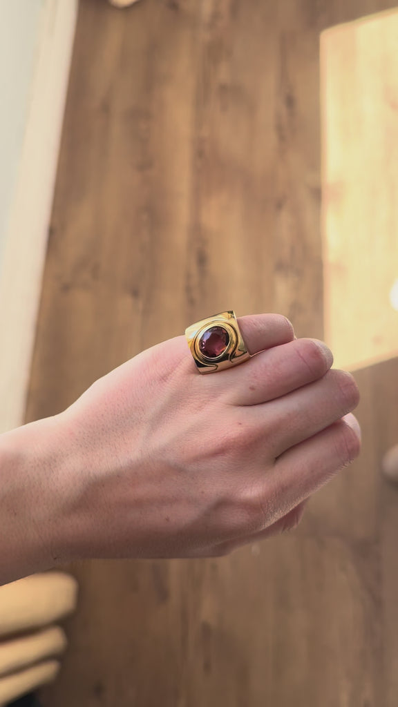 Heavy polished 14k yellow gold with a 5.14ct Oval Pink Tourmaline.