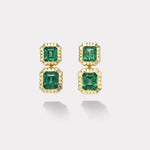 6.32ct Double Stone Emerald Heirloom Bezel Stud Earrings