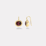14k gold earrings in our signature Bounce setting featuring two Oval Rhodolite Garnets totaling 6.76cts. These hook earrings sit close to the ear.