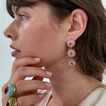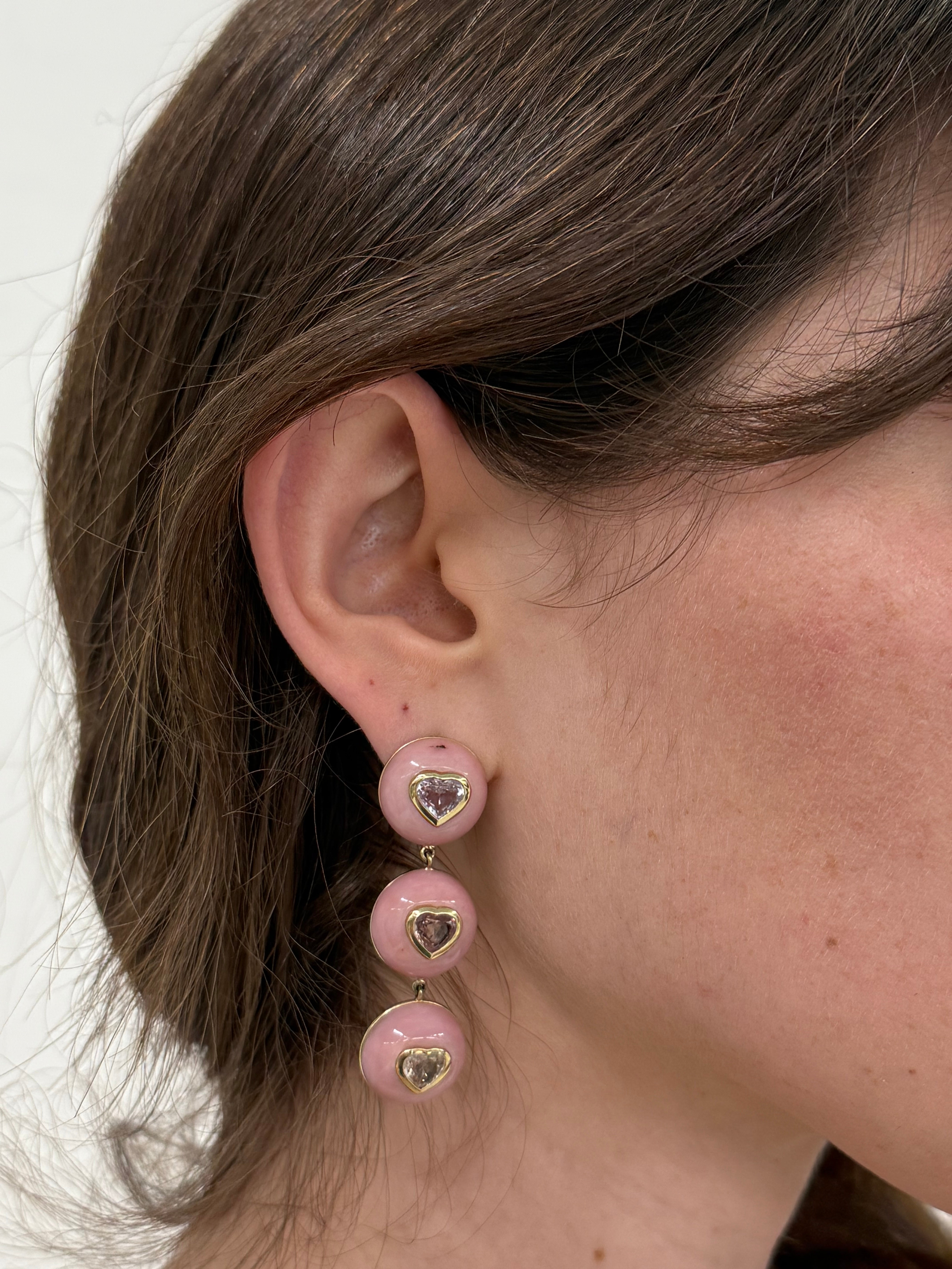 6.77ct Mixed Heart Sapphires in Hand Carved Pink Opal Lollipop Drop Earrings