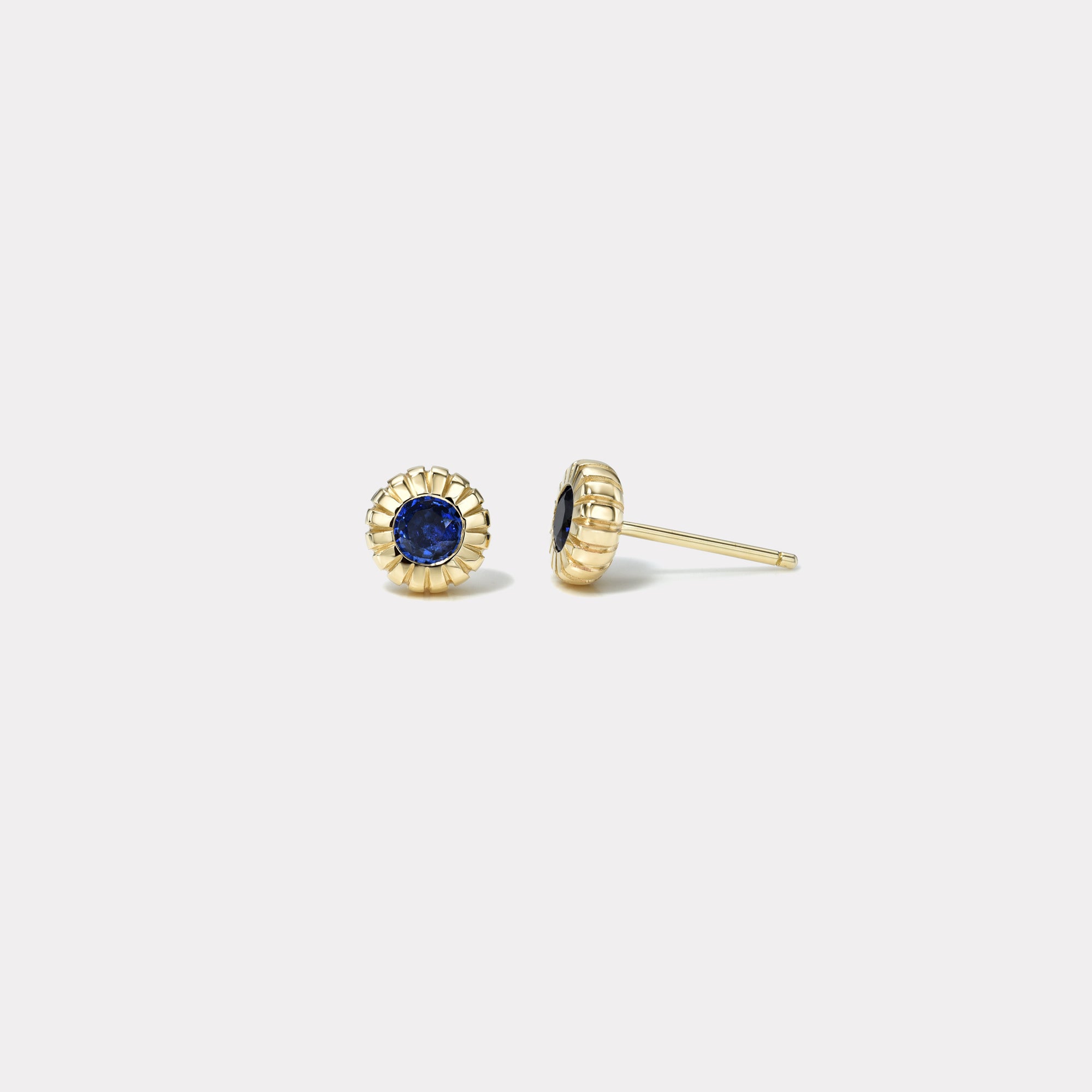These round blue sapphires are set in our gorgeous heirloom bezel setting. These earrings are solid 14k yellow gold, and have a post and heavy butterfly back. Total carat weight is 0.66ct.