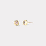 These round Peach Sapphires are set in our gorgeous heirloom bezel setting. These earrings are solid 14k yellow gold, and have a post and heavy butterfly back. Total carat weight is 0.79ct.
