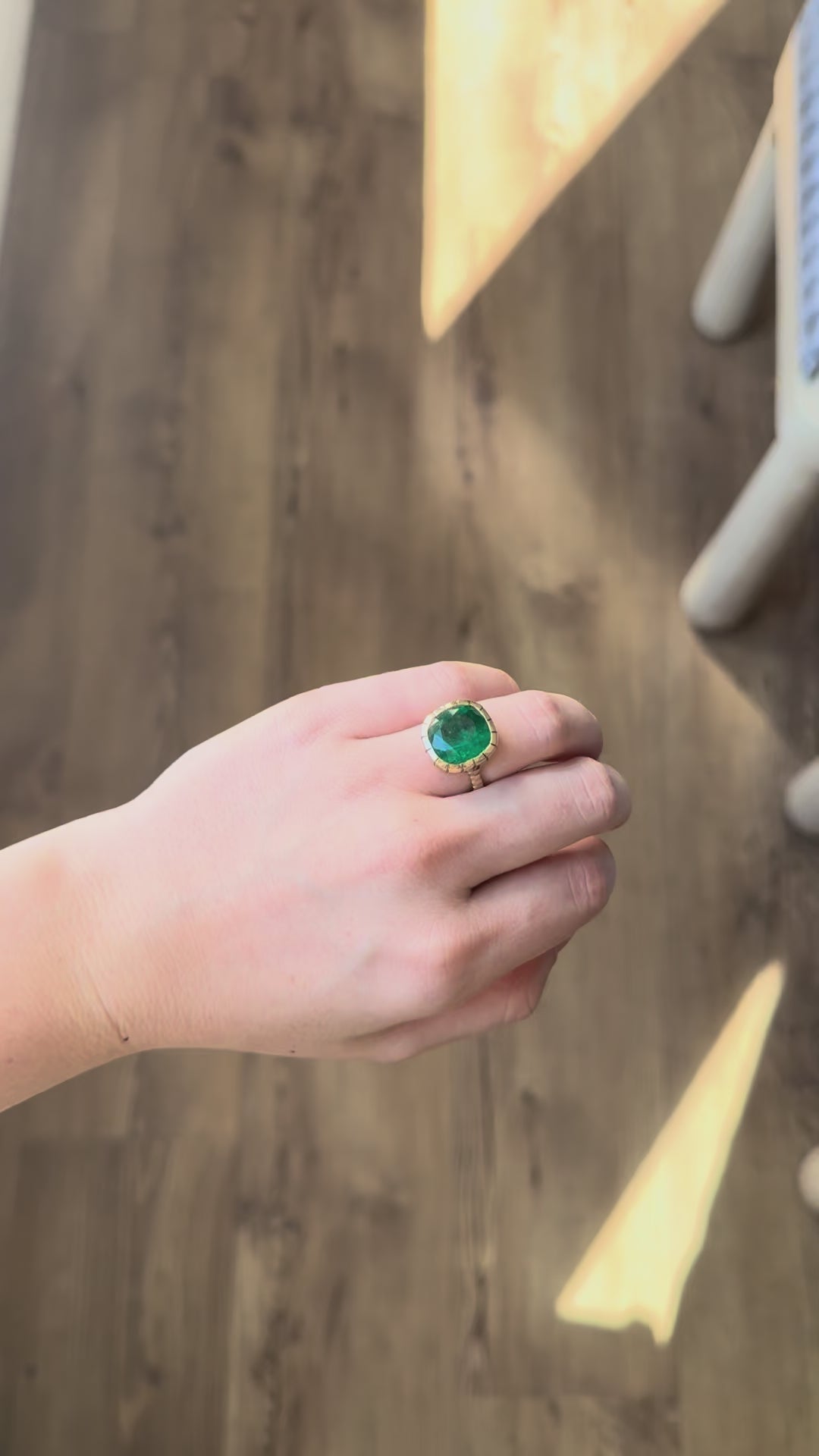 8.33ct Cushion Emerald Heirloom Bezel Ring