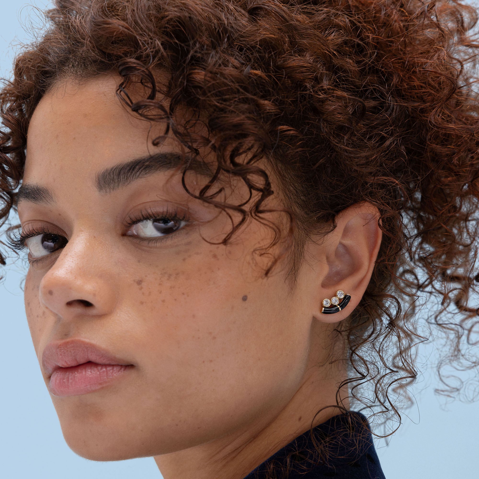 Black Onyx Crested Inlay Diamond Studs