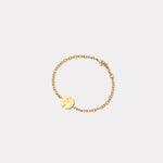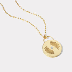 This piece features a 14k yellow gold pendant medallion in a heavy solid gold chain handmade in our studio. Pendant diameter is 12mm. The total chain length is 7" with a jump ring at 6.5". Please contact us if you're not sure about your sizing.