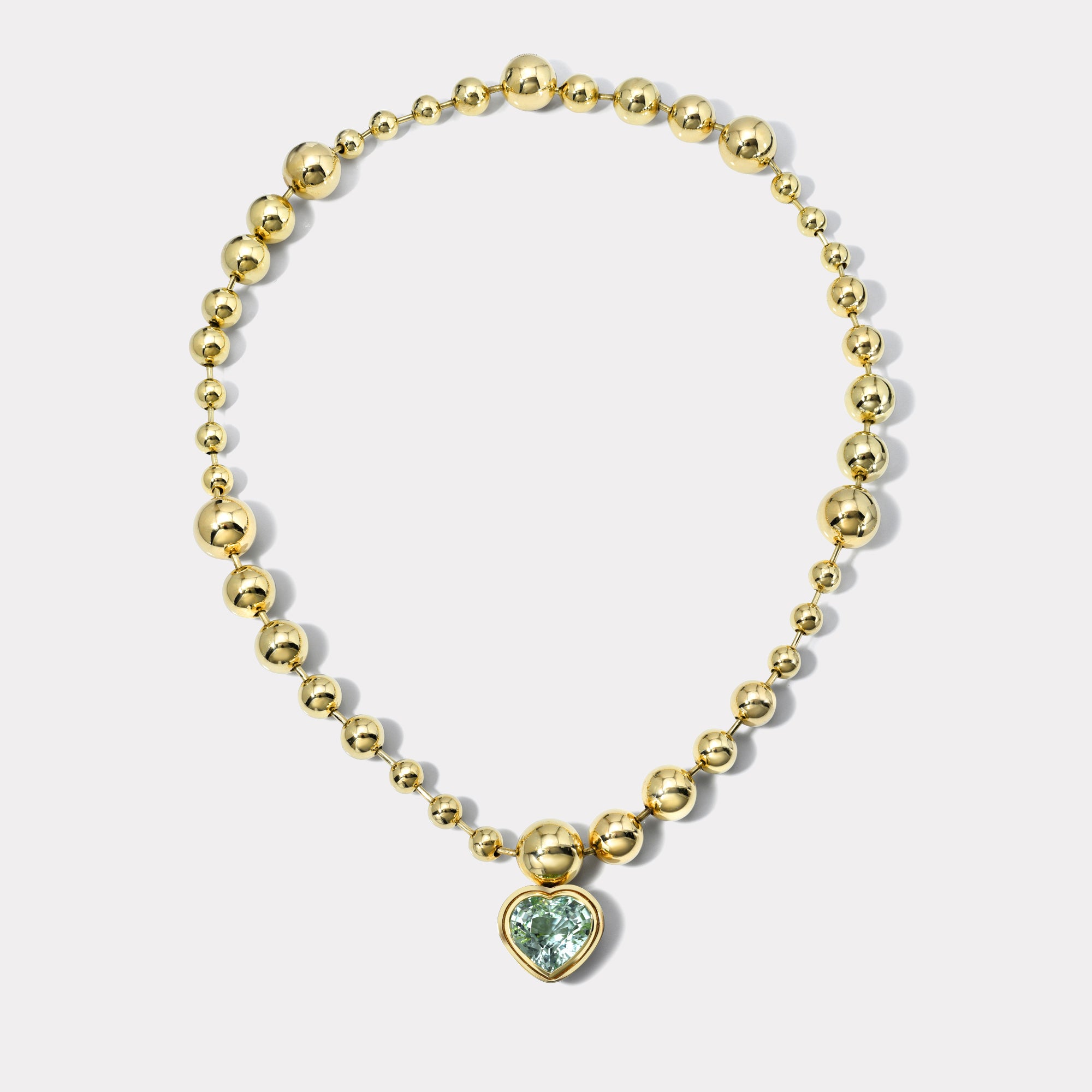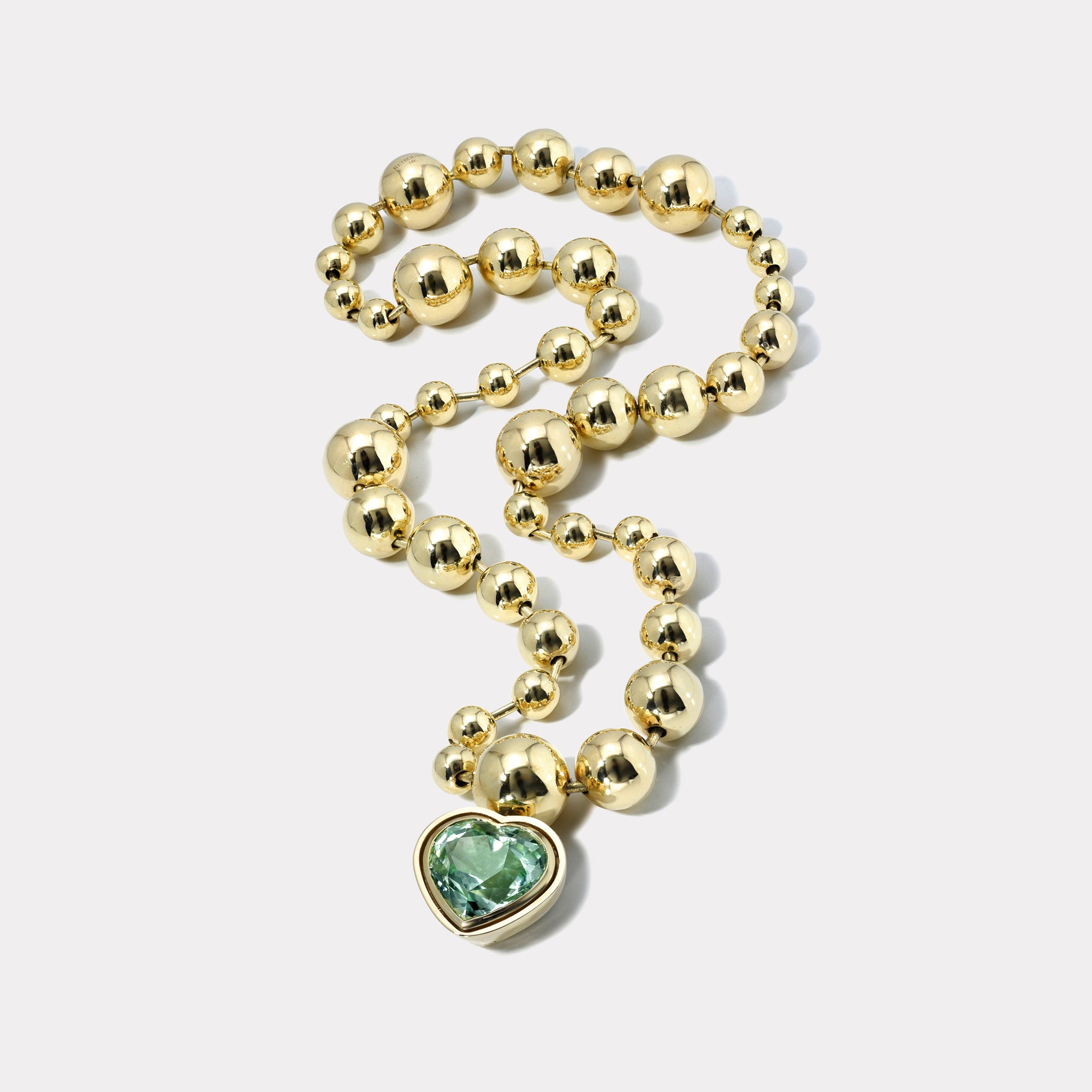 Cascading Domino Ball Chain with 12.14ct Mint Tourmaline Heart Bounce Pendant
