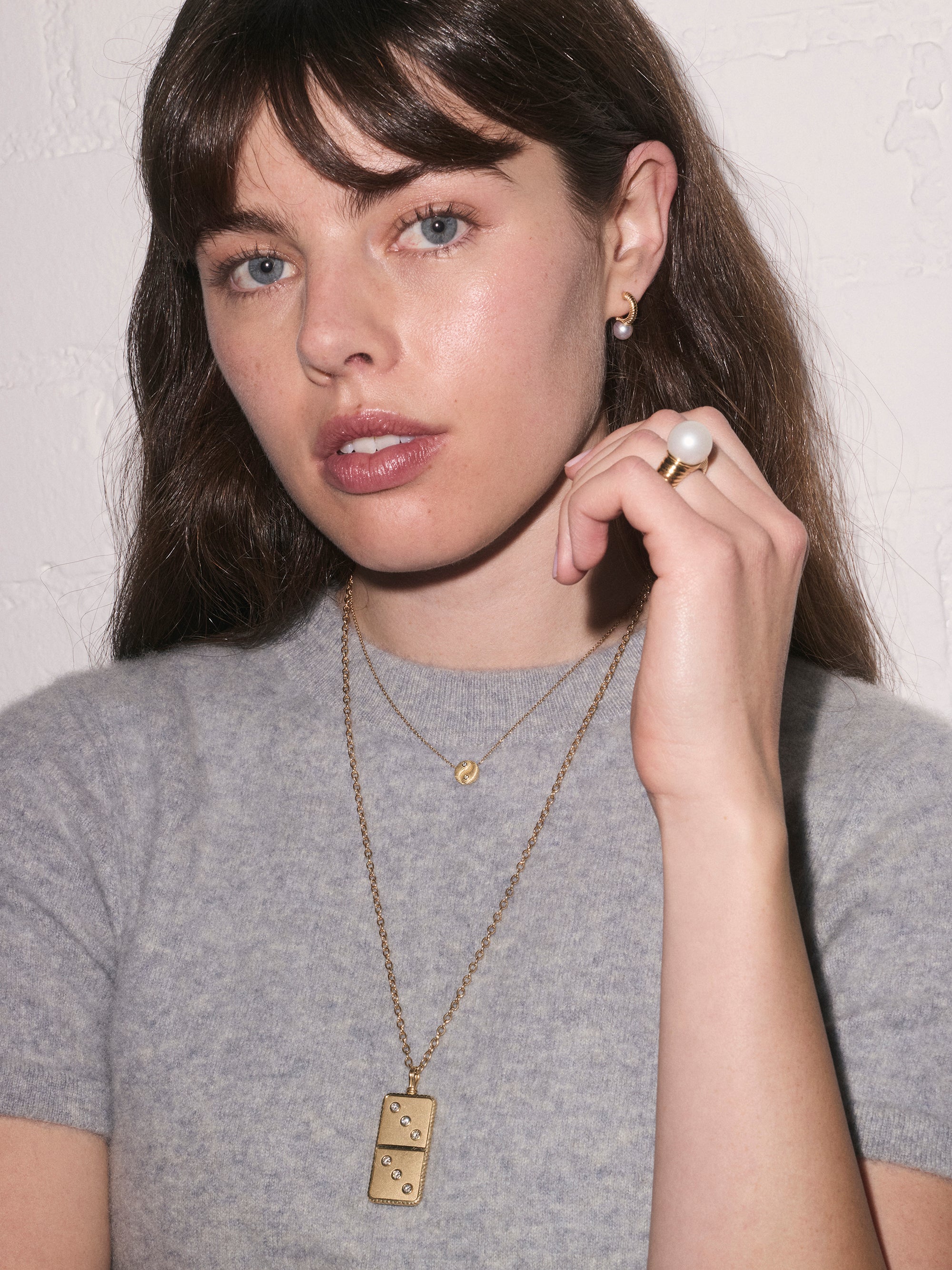 Our Domino collection represents the idea that even small actions can create large impact. The back of the pendant is engraved 'Everything starts somewhere'.