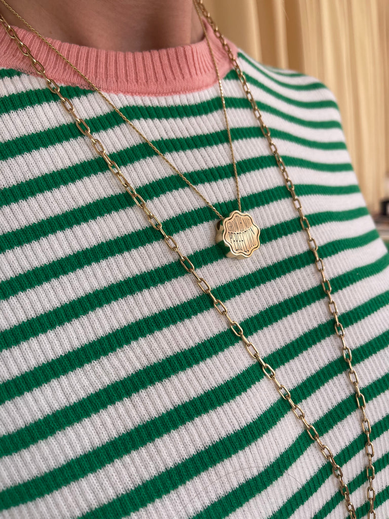 This piece is part of our Talisman collection. This capsule of engraved gold pieces have sentiments that embody the original talisman collection motifs.