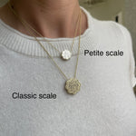 Pendant is approximately 20mm in diameter and comes on a 20" rope chain.