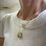 Pendant is approximately 20mm in diameter and comes on a 20" rope chain.