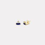 Hand cut Lapis inlay set in 14k yellow gold with 0.20ct of white diamonds.