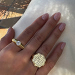 We make jewelry with integrity. The collection is crafted by a small team of skilled artisans who take pride in their work. In the studio, we recycle as much gold as possible. For non-recycled metal, our caster works exclusively with fair trade, fair mined gold. We work with extremely reputable diamond and gemstone dealers both locally and abroad. Our melee (accent diamonds) are conflict-free and consistently sourced from a single supplier. Diamonds with a GIA report are available over 0.25ct upon request. Please inquire for associated costs. Colored stones and the rough stone for our inlay are hand selected. All of our inlay is hand cut in Los Angeles.