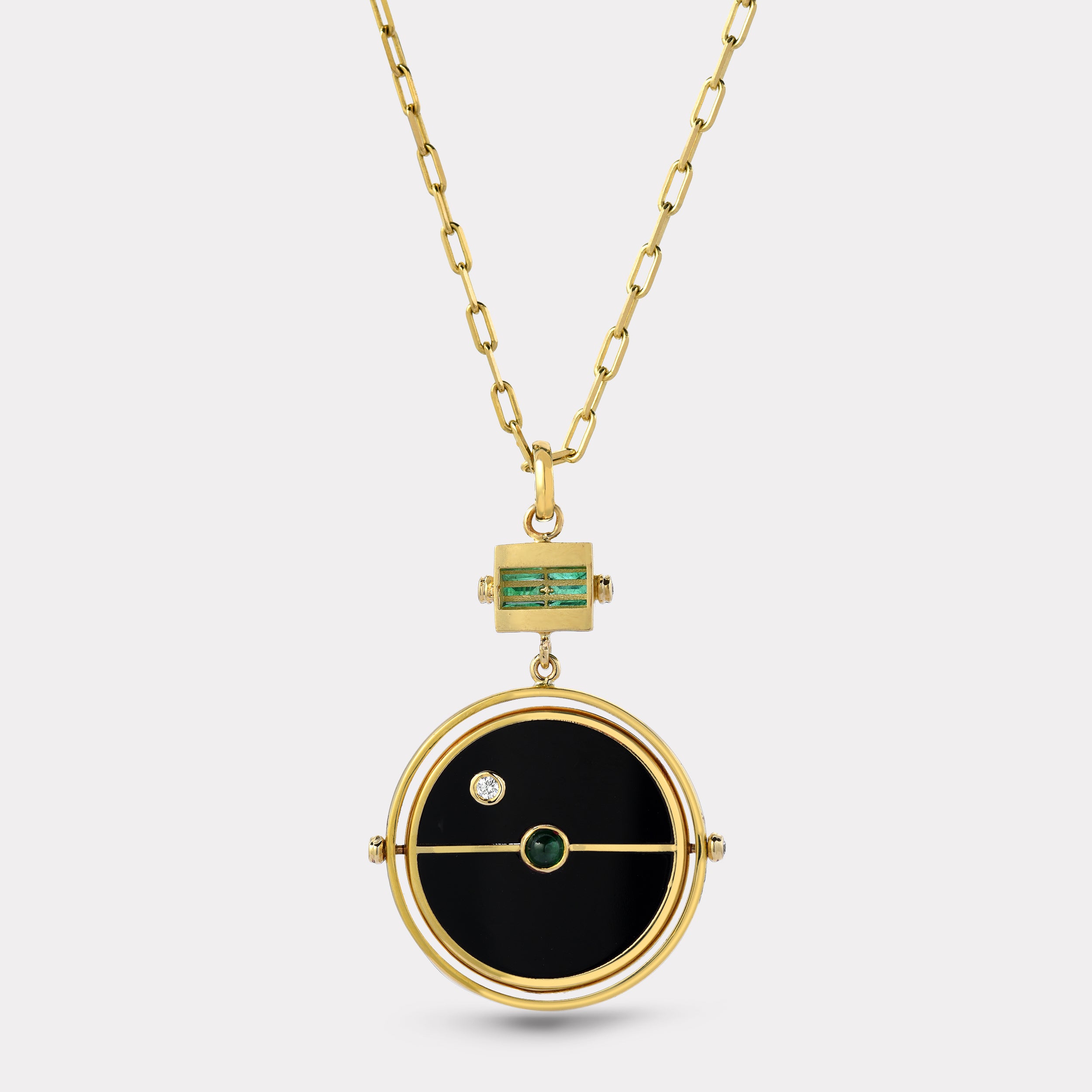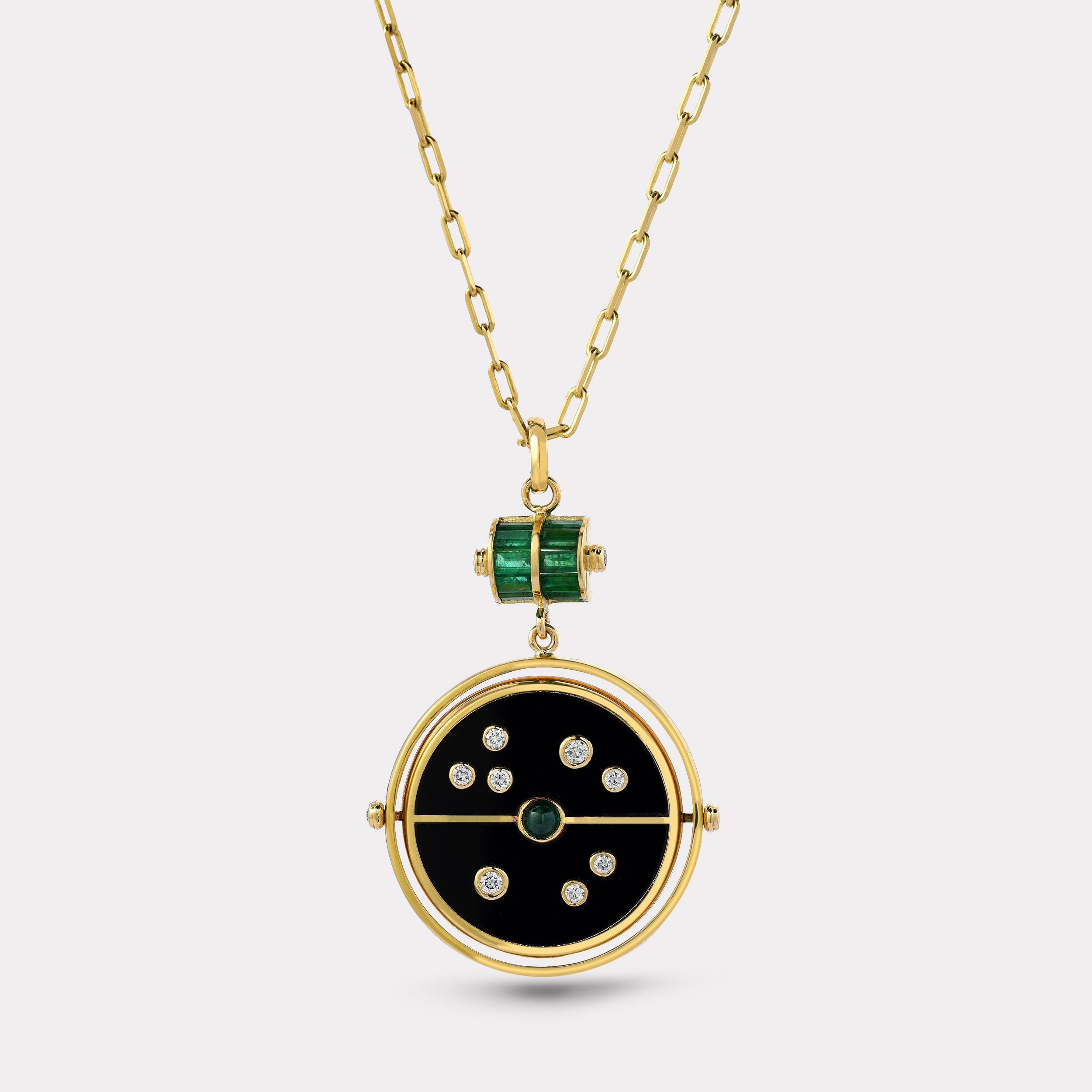 Grandfather Compass Pendant with Black Onyx and Emerald