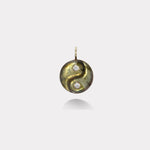 This charm represents two seemingly opposite forces coexisting in a beautiful harmony. It features hand cut natural labradorite with white diamonds set in 14k yellow gold.