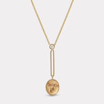 18" chain with approximately 1" drop loop. Pendant disc is roughly 12mm x 10mm.