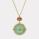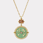 Grandfather Compass Pendant with Green Turquoise and Lotus Garnet