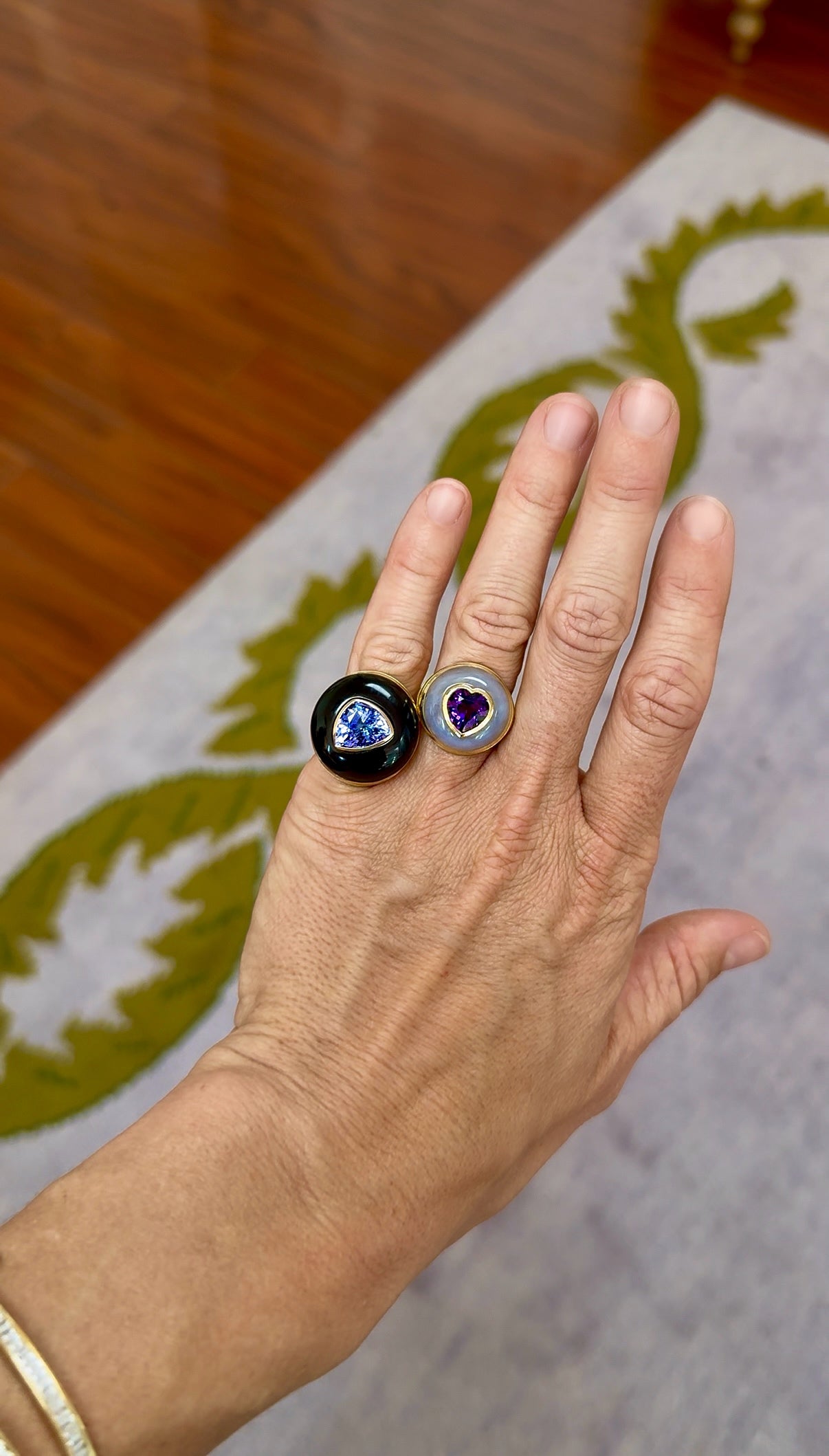 Classic Lollipop Ring - Triangle Tanzanite in Hand Carved Onyx