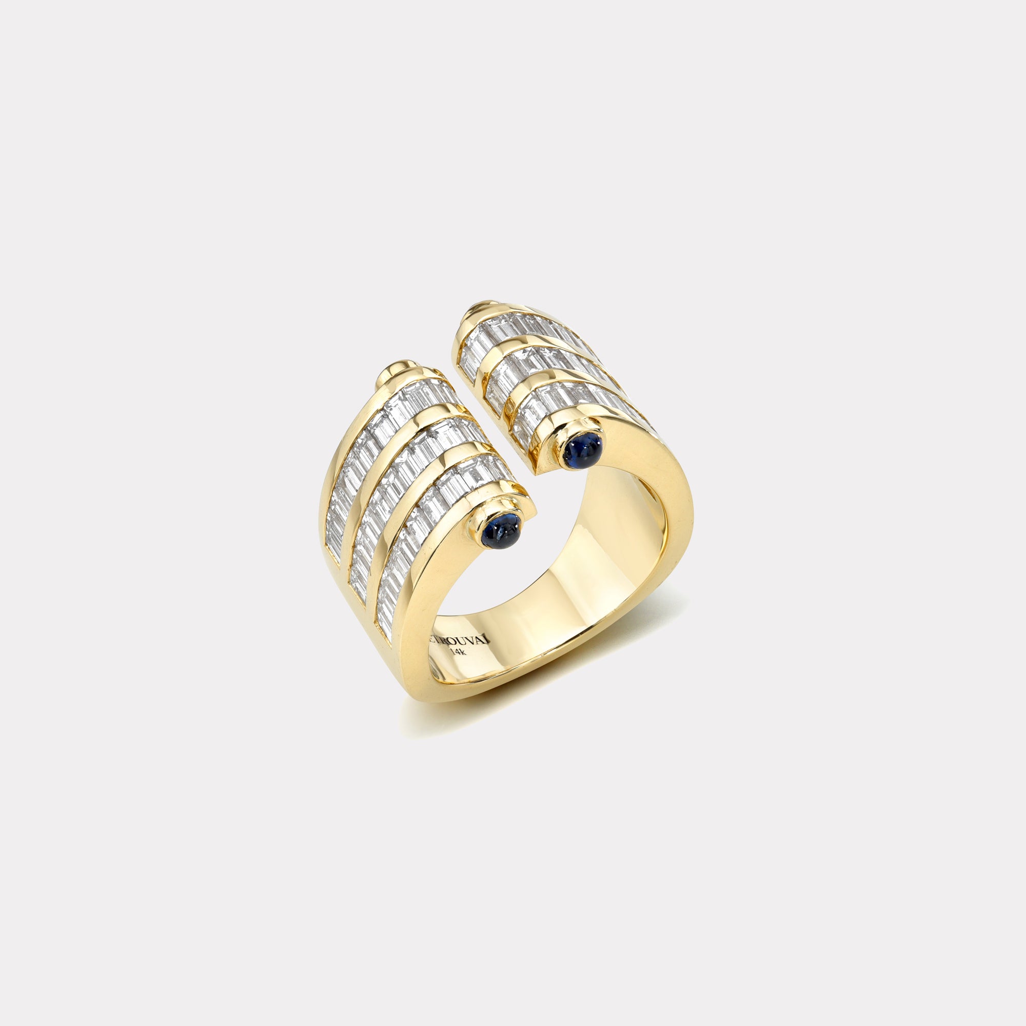 Magna Cuff Ring with Baguette Diamonds and Blue Sapphires