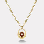 Hand cut Carnelian inlay set with a 0.06ct white diamond on a 16" hand made 14k gold rolo chain.