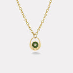 Hand cut Nephrite Jade set with a 0.06ct white diamond on a 16" hand made 14k gold rolo chain.