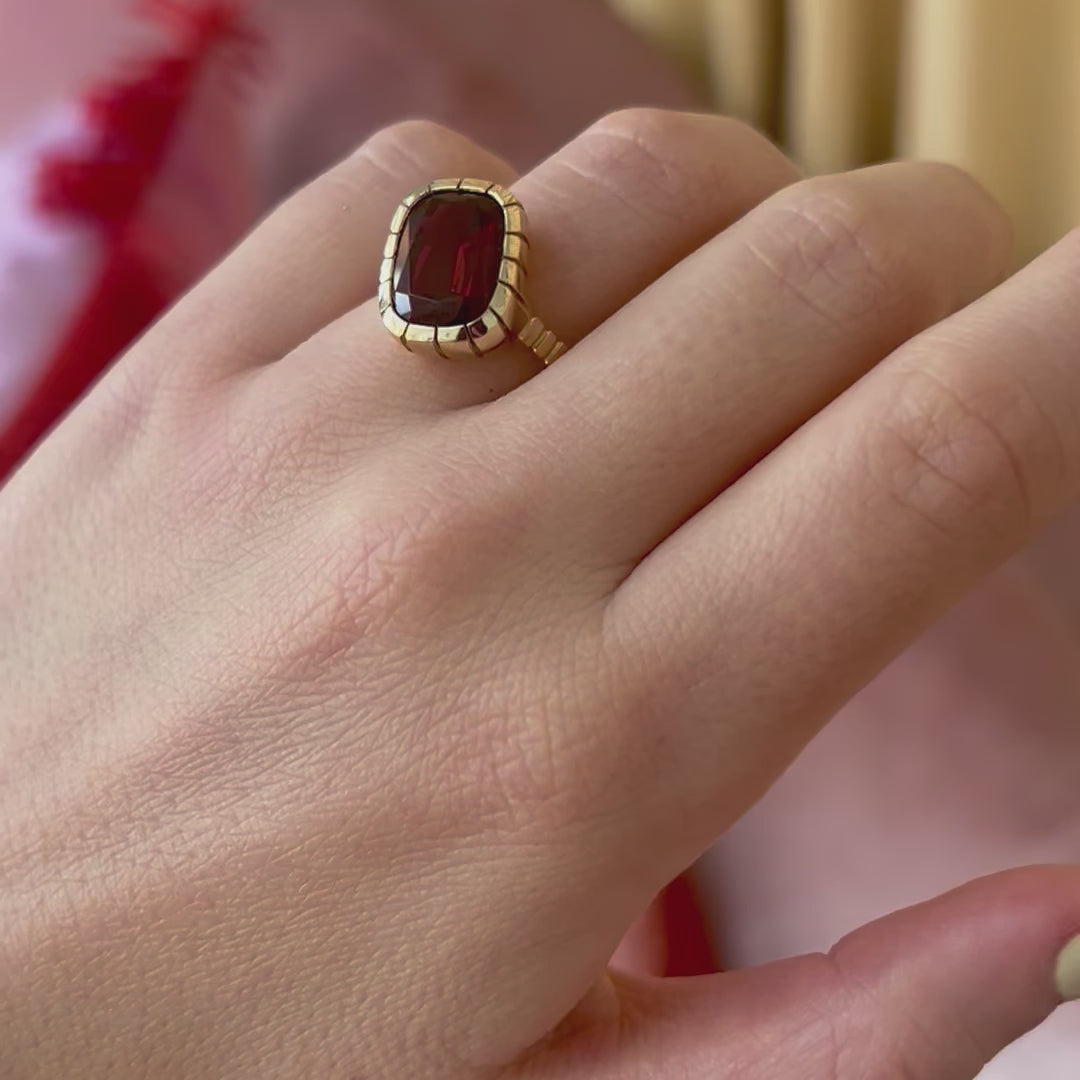 6.16ct Tilted Step-cut Cushion Garnet Heirloom Bezel Ring