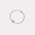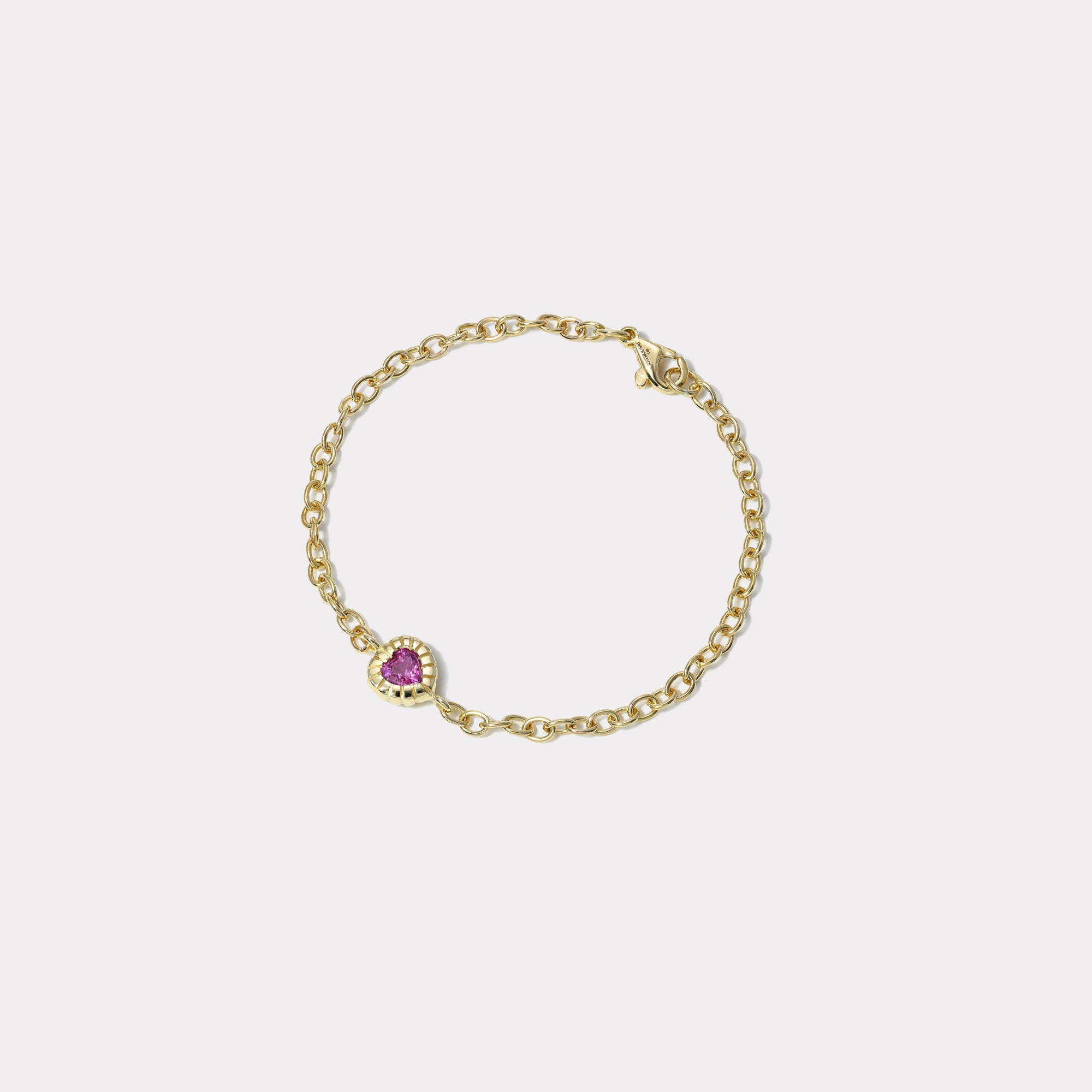 14k yellow gold bracelet with a .80ct Heart Pink Sapphire.