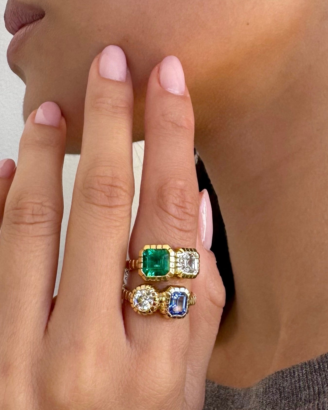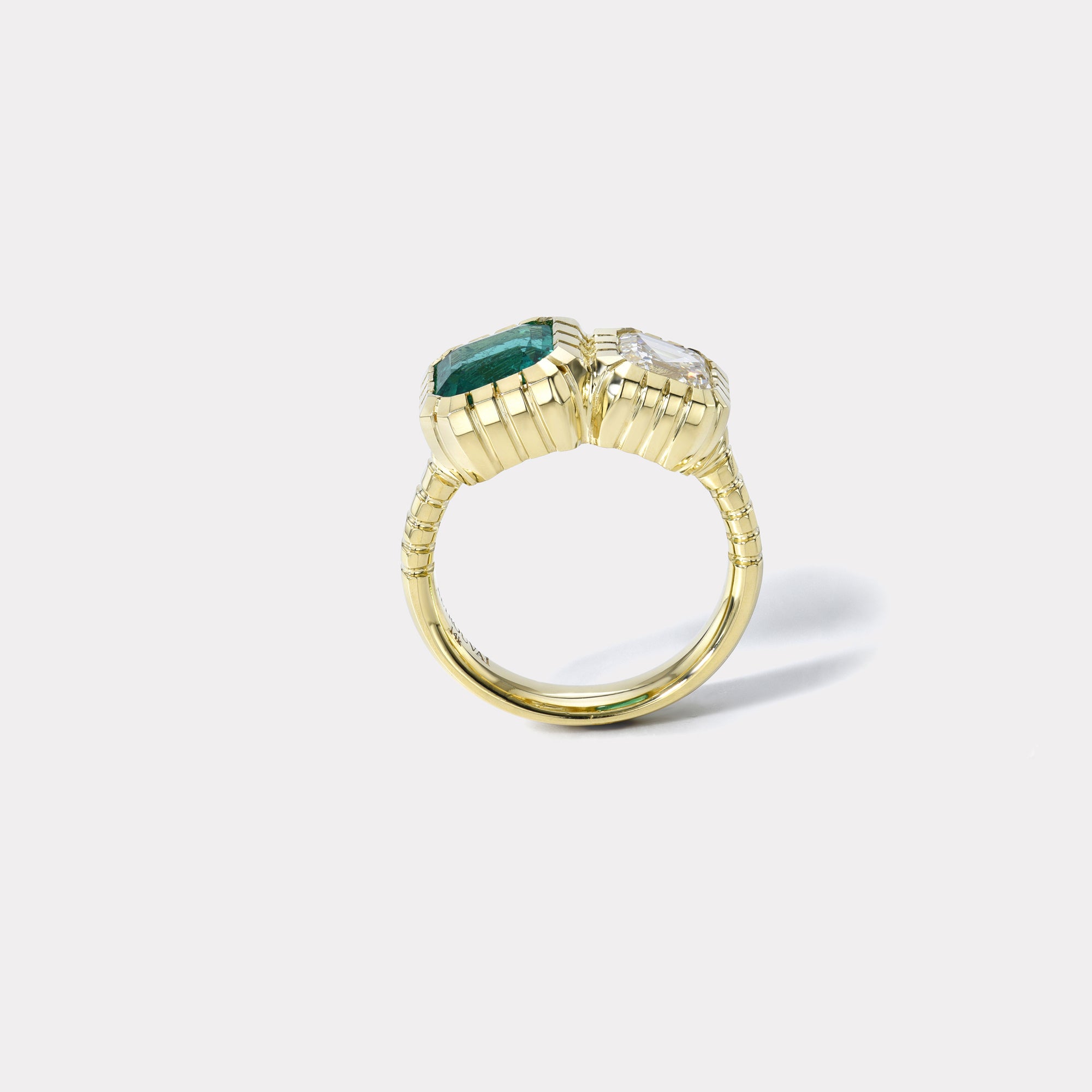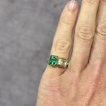 Double Stone 1.17ct GIA Diamond & 1.6ct Emerald Heirloom Bezel Ring