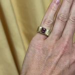 Polished 14k yellow gold with a 1.52ct Brick Sapphire.