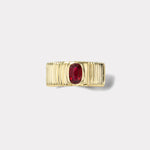 Polished 14k yellow gold with a 1ct Oval Ruby.