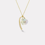 Oval Diamond Petite Flora Necklace with Hand Carved Rainbow Opal and Chalcedony
