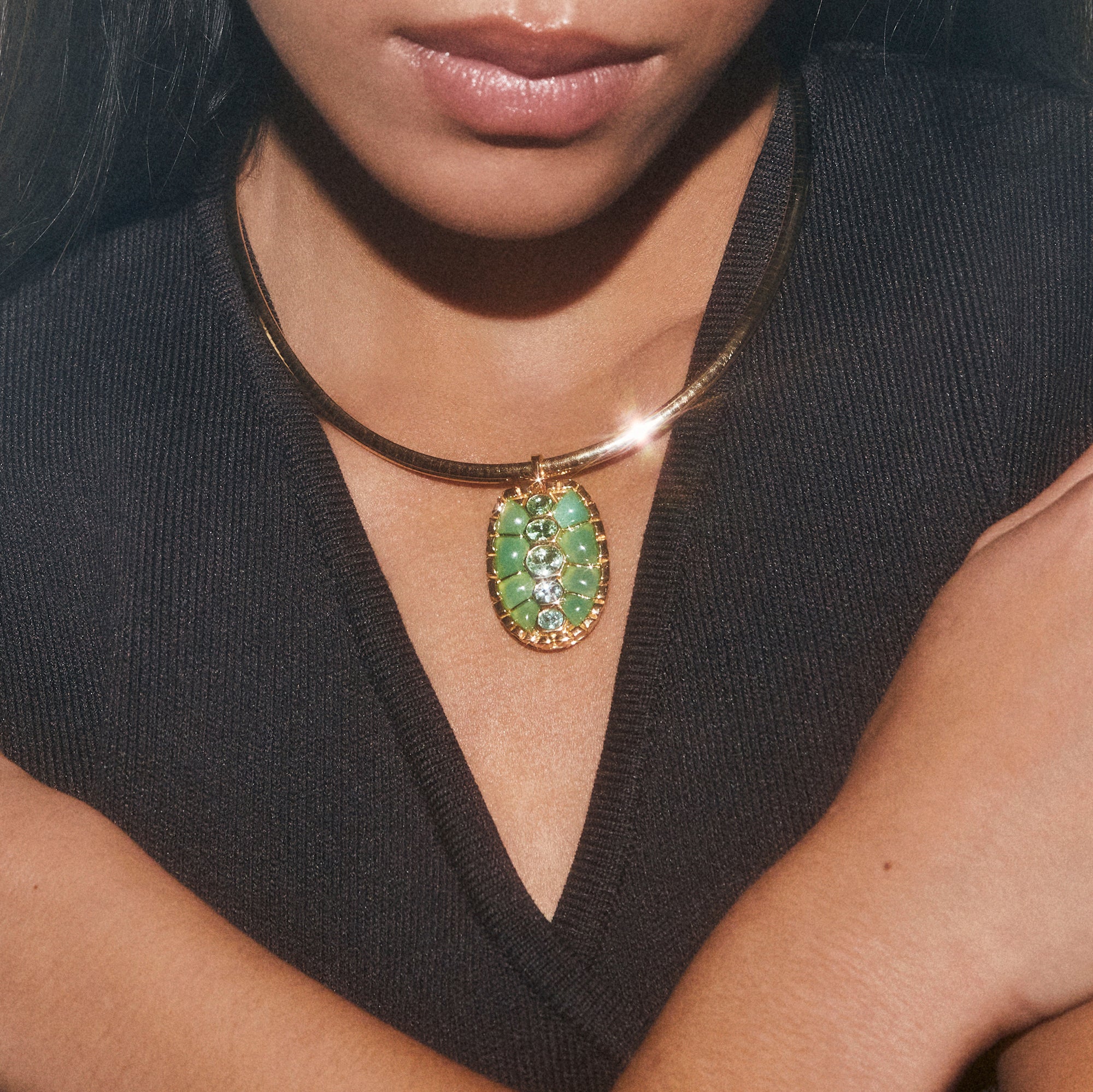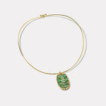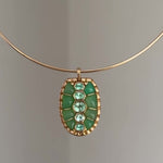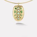 Our 18k Tortoiseshell is encrusted with five stunning Cuprian & Co. Paraiba Tourmalines totaling 2.39cts and surrounded by hand cut Chrysoprase. The reverse of the pendant reminds us that ‘nothing happens overnight’. Comes on a 16" handmade wire chain.