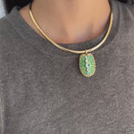 2.39ct Paraiba and Hand Carved Chrysoprase Tortoiseshell Pendant