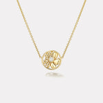 This pendant is 14k yellow gold and features a .04ct round brilliant Diamond. Pendant comes on a rolo 16" chain.