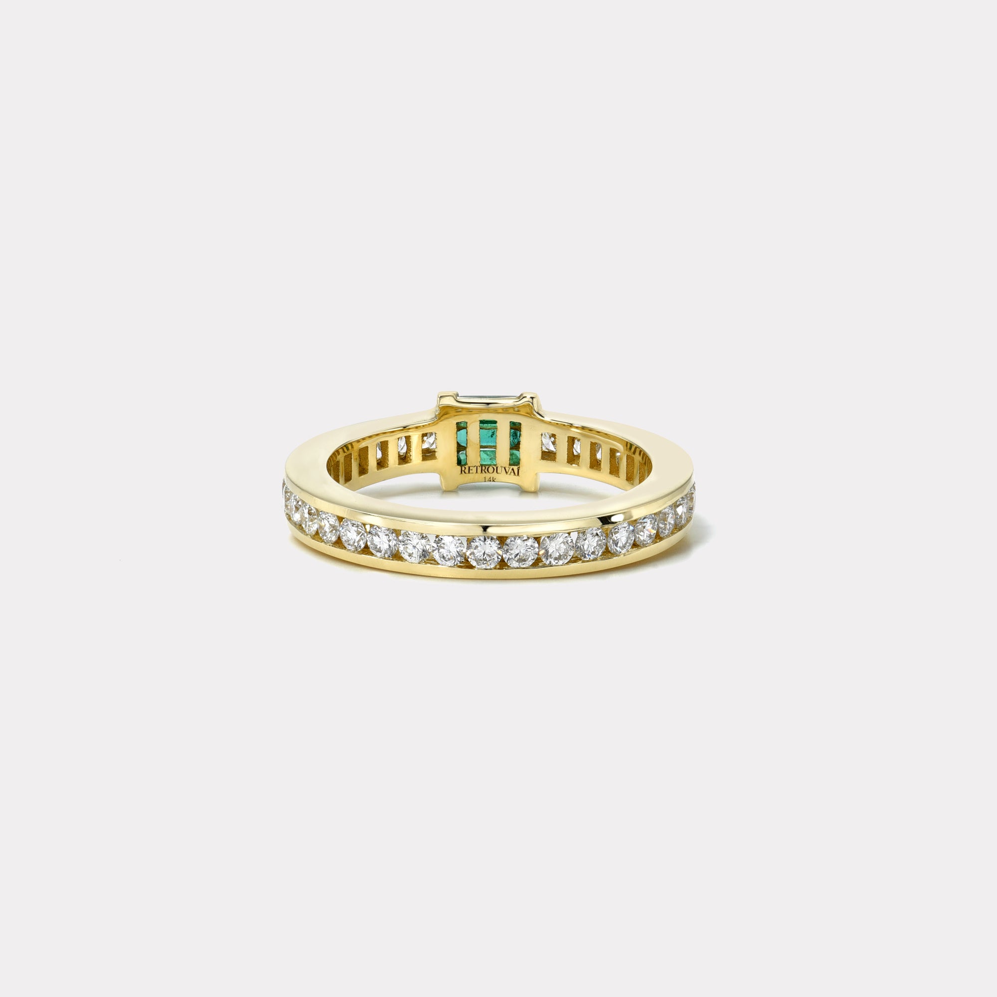 Magna Barrel Ring - Baguette Emeralds and Diamonds