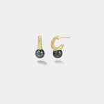 14k yellow gold earrings with Tahitian Pearls. These earrings are meticulously crafted in Los Angeles with natural pearls, ensuring that each pair is uniquely distinct as no two pearls share identical characteristics. Note there are 2 faces and this is the smaller of the 2.