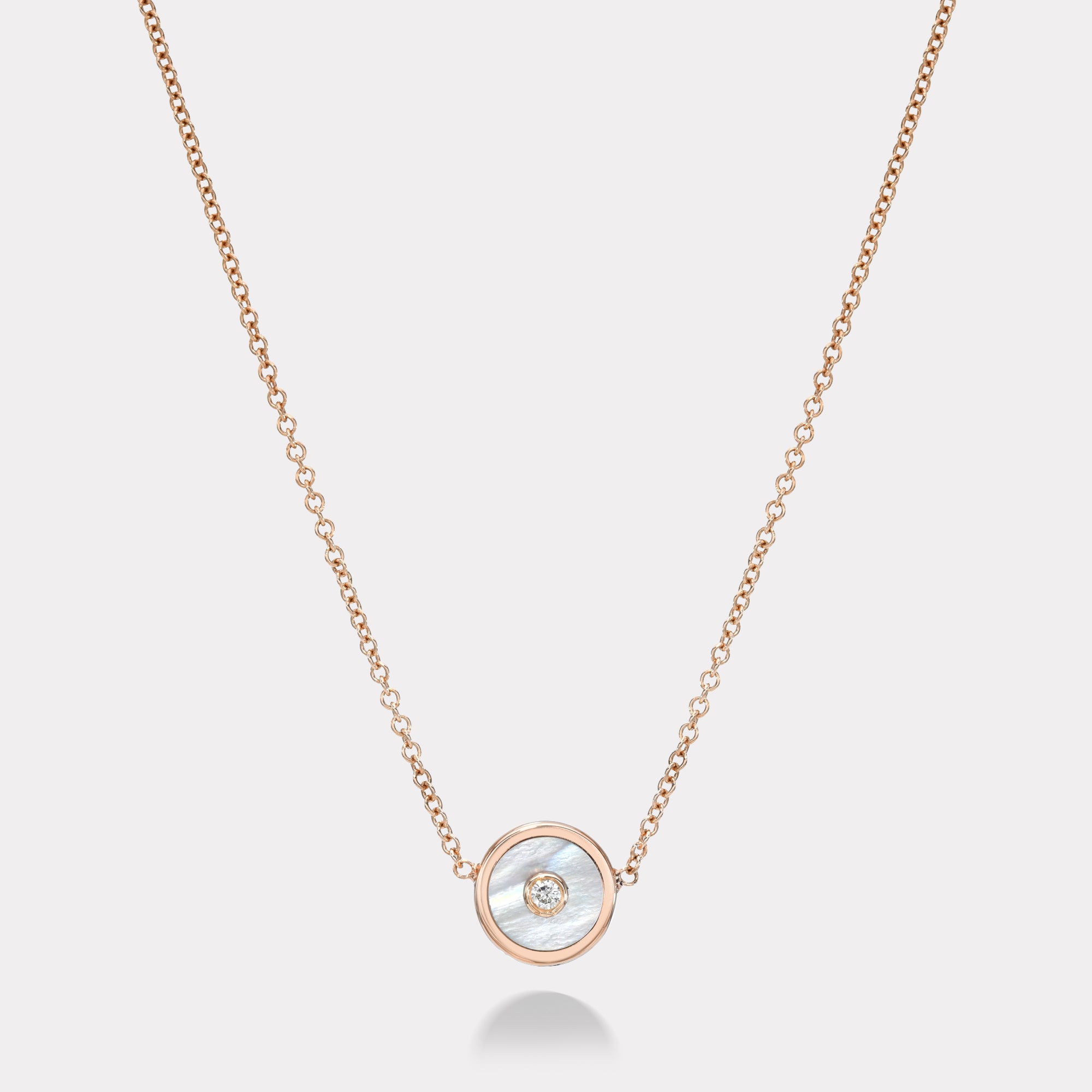 Rose Gold Mini Compass Pendant with White Mother of Pearl