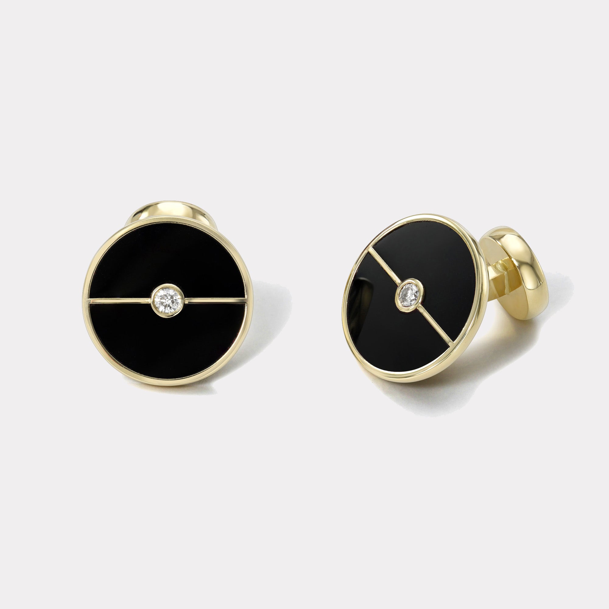 Black Onyx inlay set in 14k yellow gold with 0.2tcw of white diamonds. Cufflinks sold in a pair.